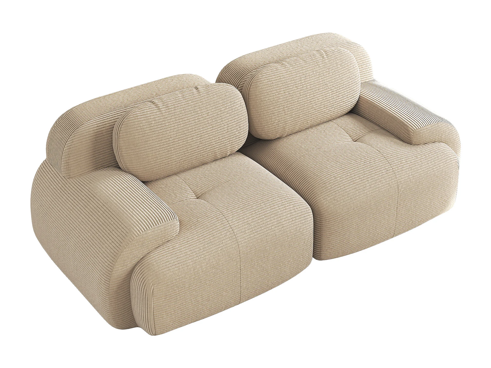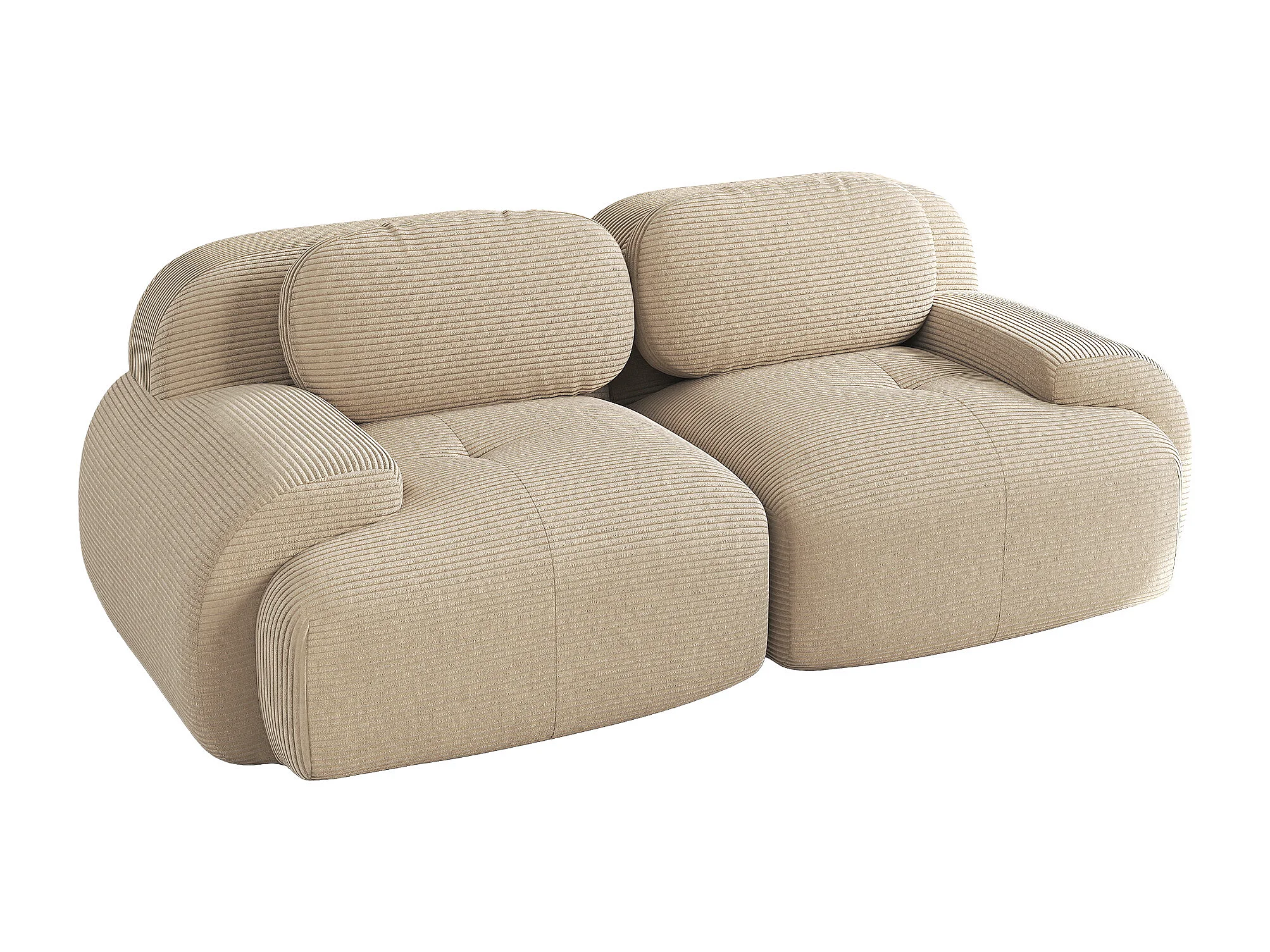 Divano in velluto a coste a 2 posti - Braccioli curvi - Beige
