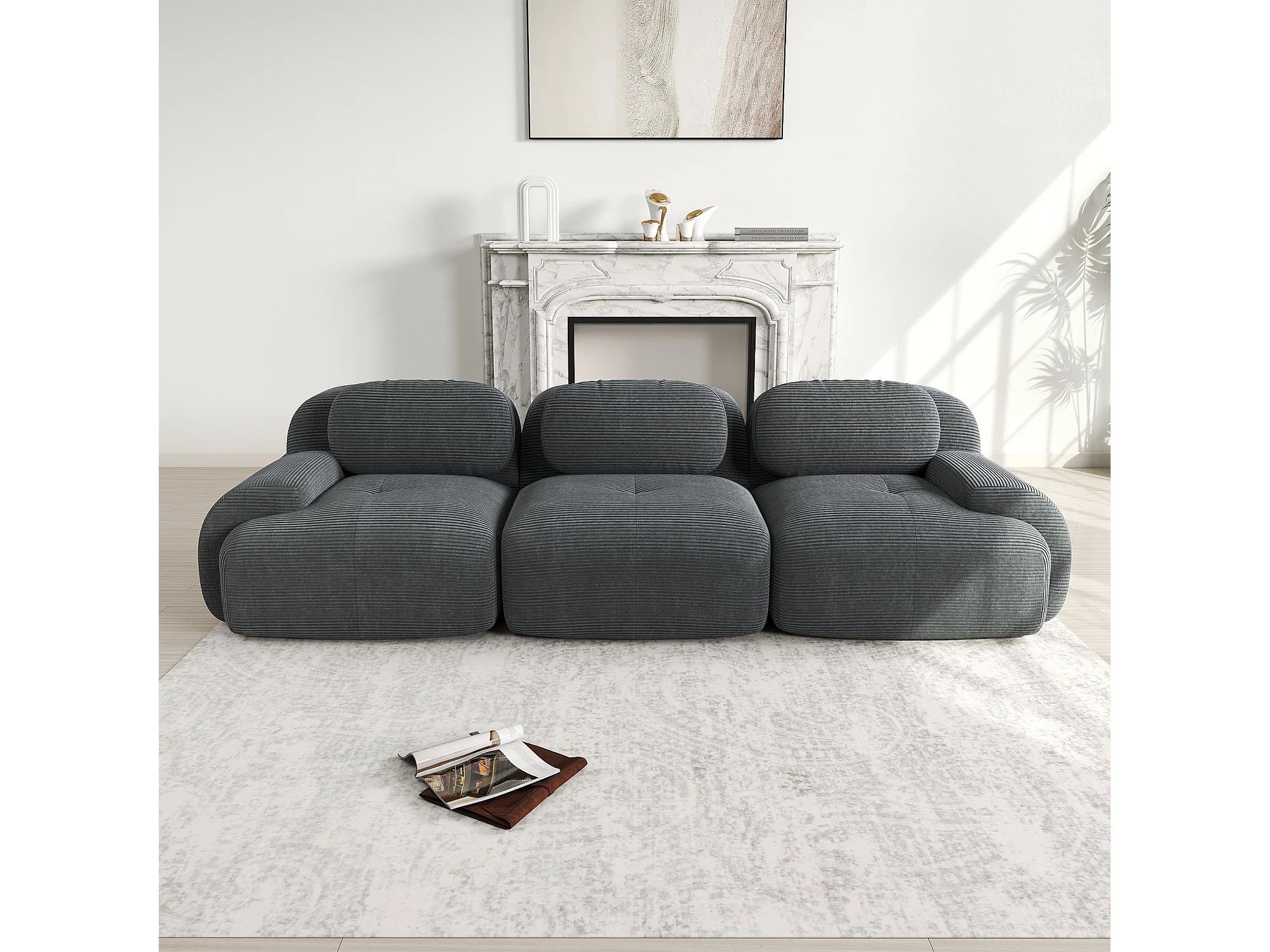 Divano in velluto a coste a 3 posti - Non necessita di montaggio - Grigio