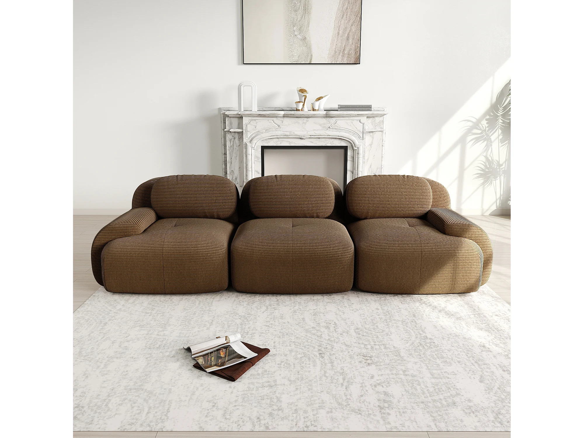Divano in velluto a coste a 3 posti - Non necessita di montaggio - Marrone