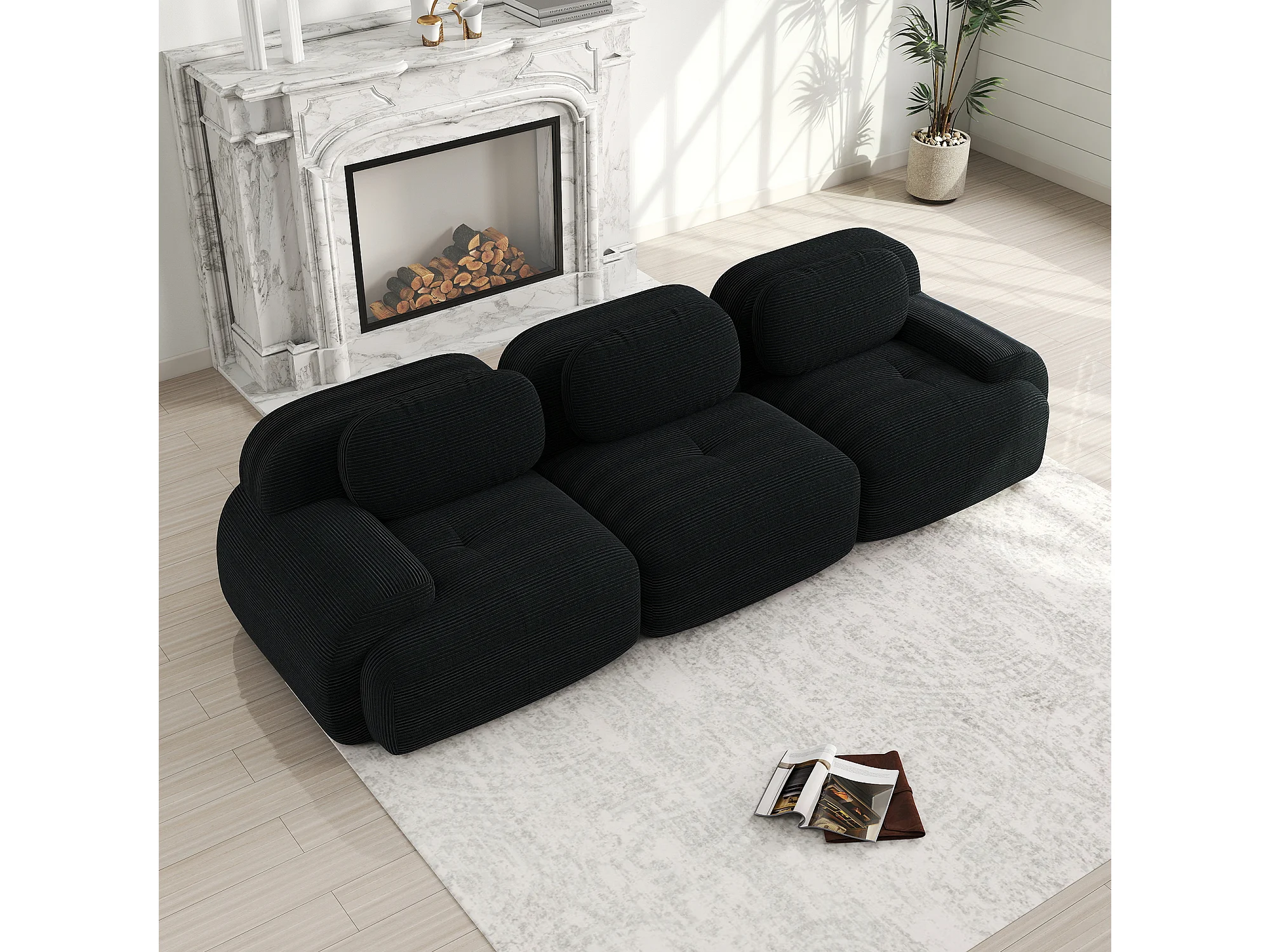 Divano in velluto a coste a 3 posti - Non necessita di montaggio - Nero