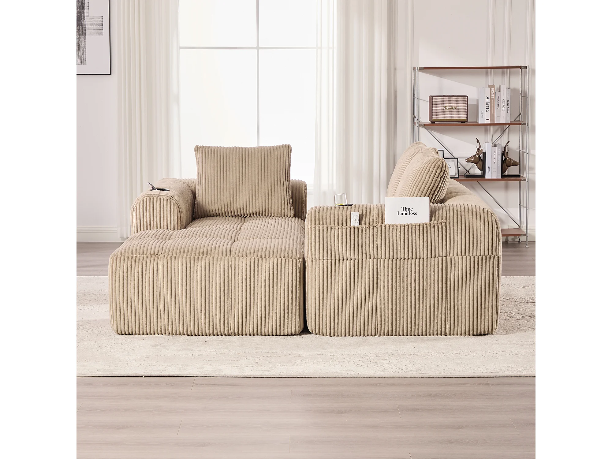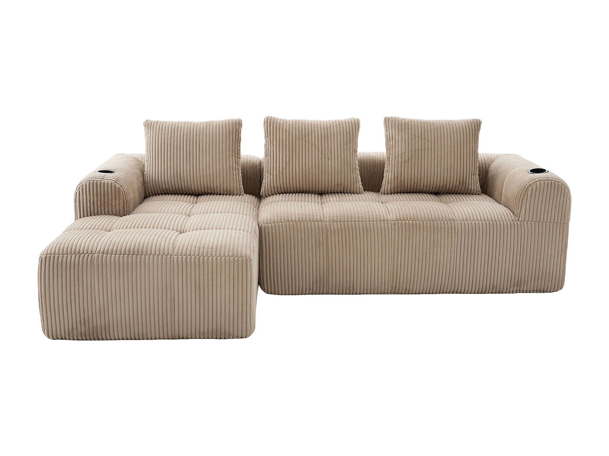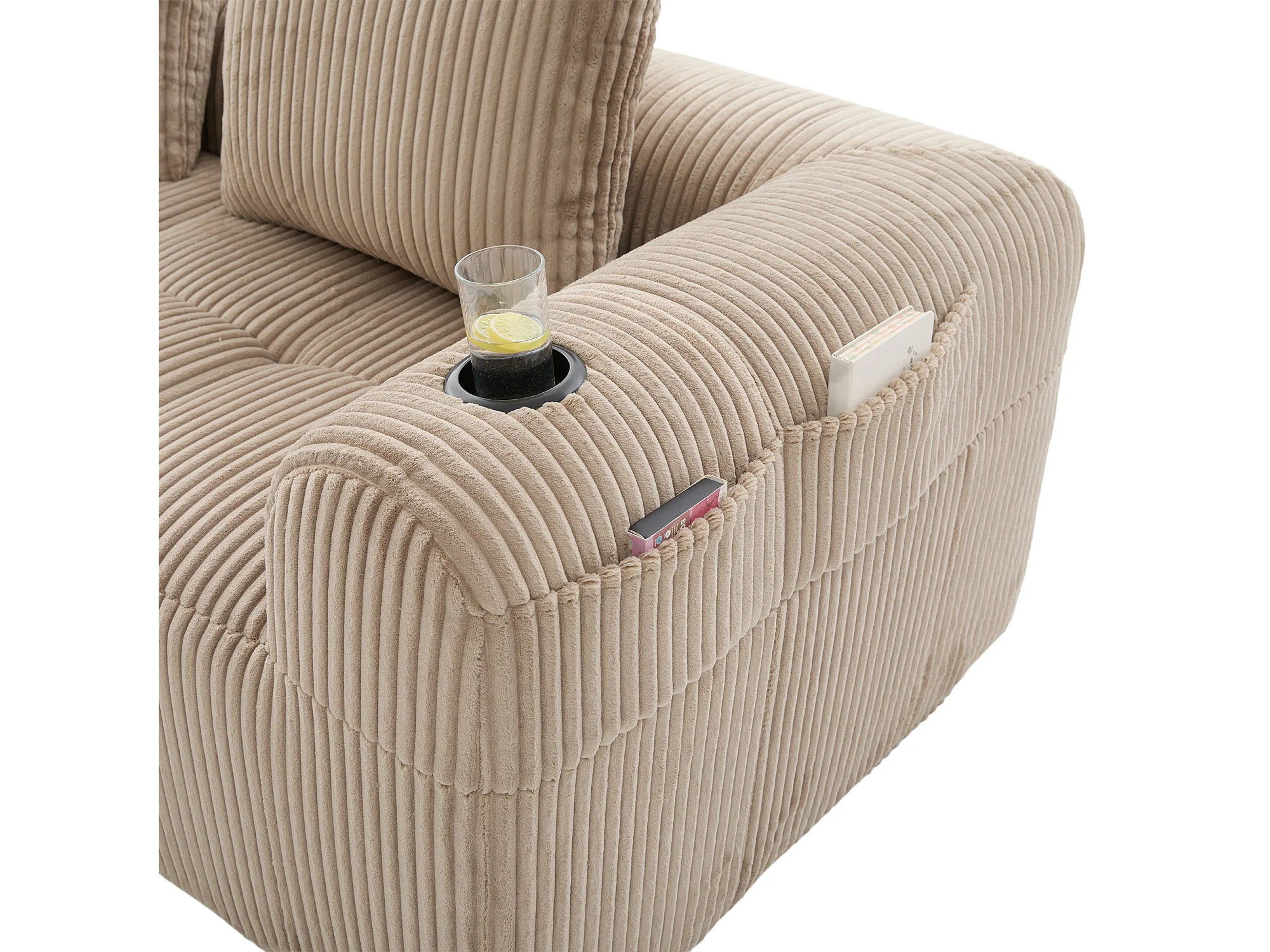 Divano in velluto a coste a 4 posti - 3 cuscini e tasca laterale - Colore cachi