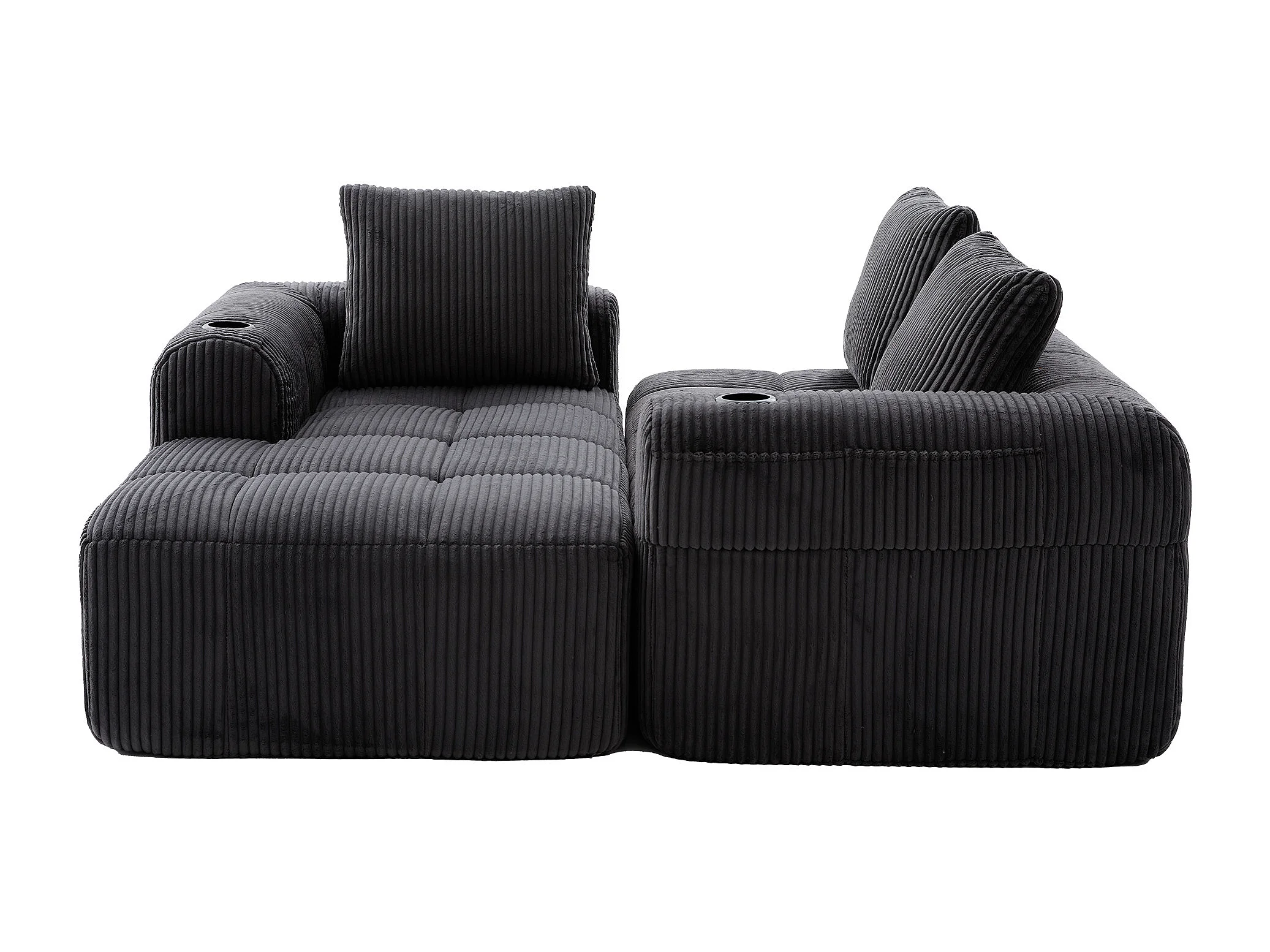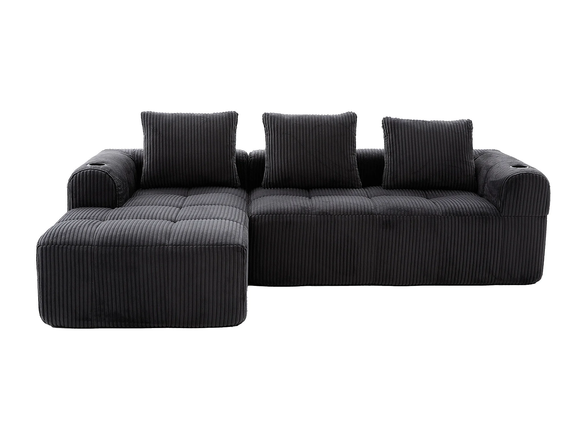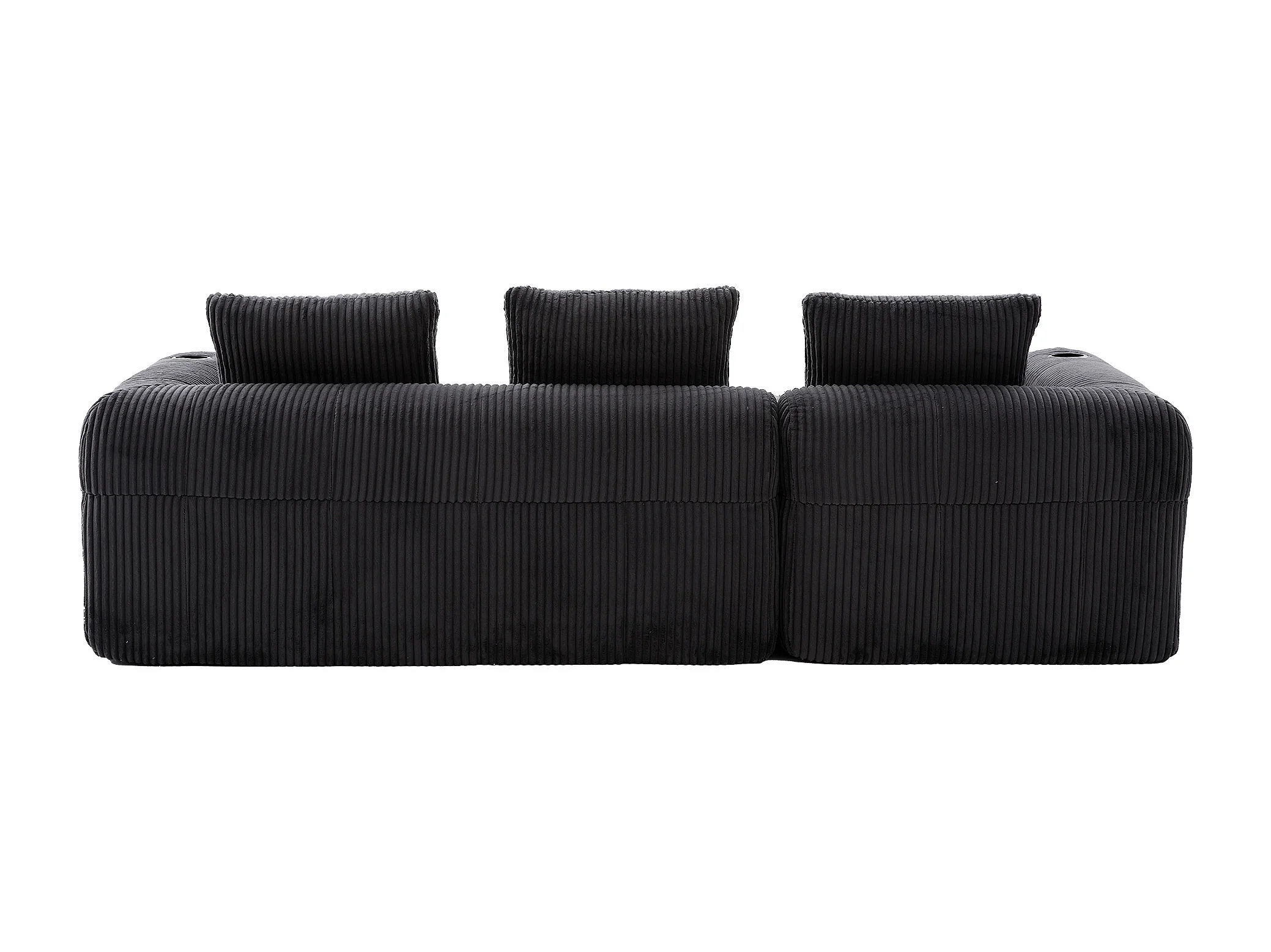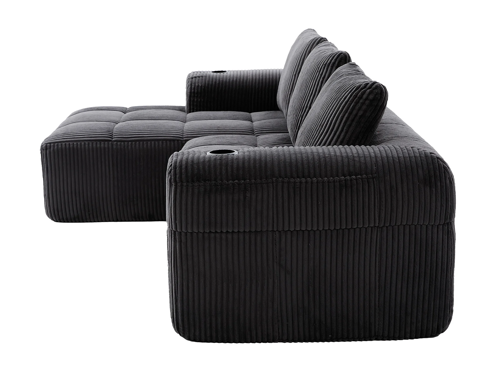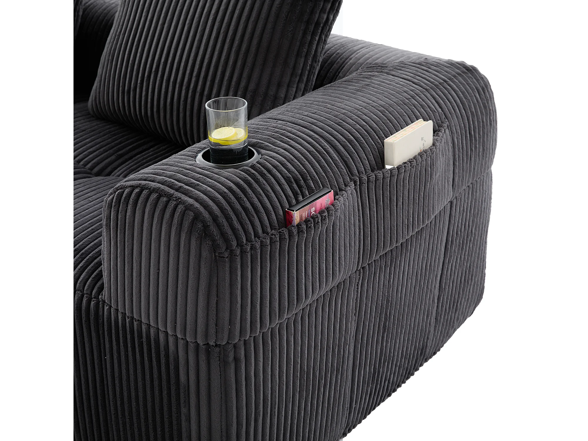 Divano in velluto a coste a 4 posti - 3 cuscini e tasca laterale - Grigio scuro