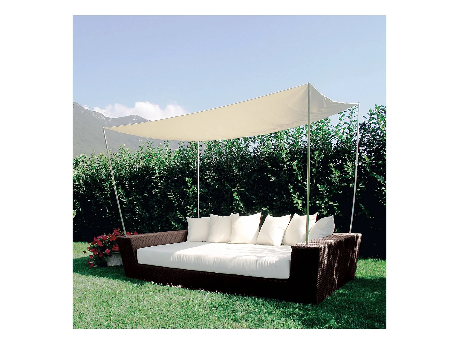 MilaniHome.it - Divano In Wicker Marrone Con Cuscini E Parasole Beige Intreccio In Rattan Sintetico Da Esternodi coloreMarrone