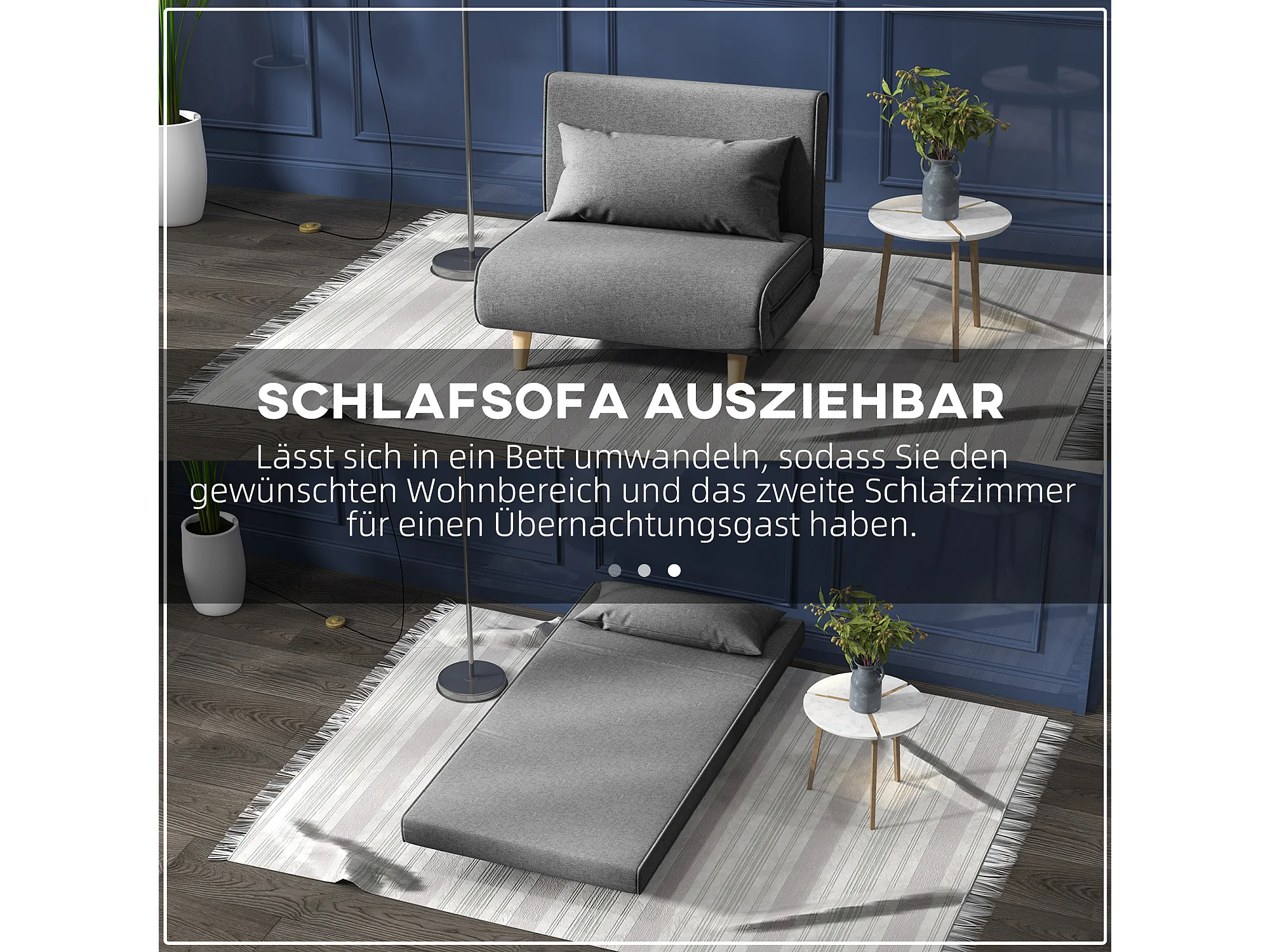 Divano letto 1 posto, divanetto con schienale regolabile, stile scandinavo, 95x95x80 cm, grigio, con piedini retrattili