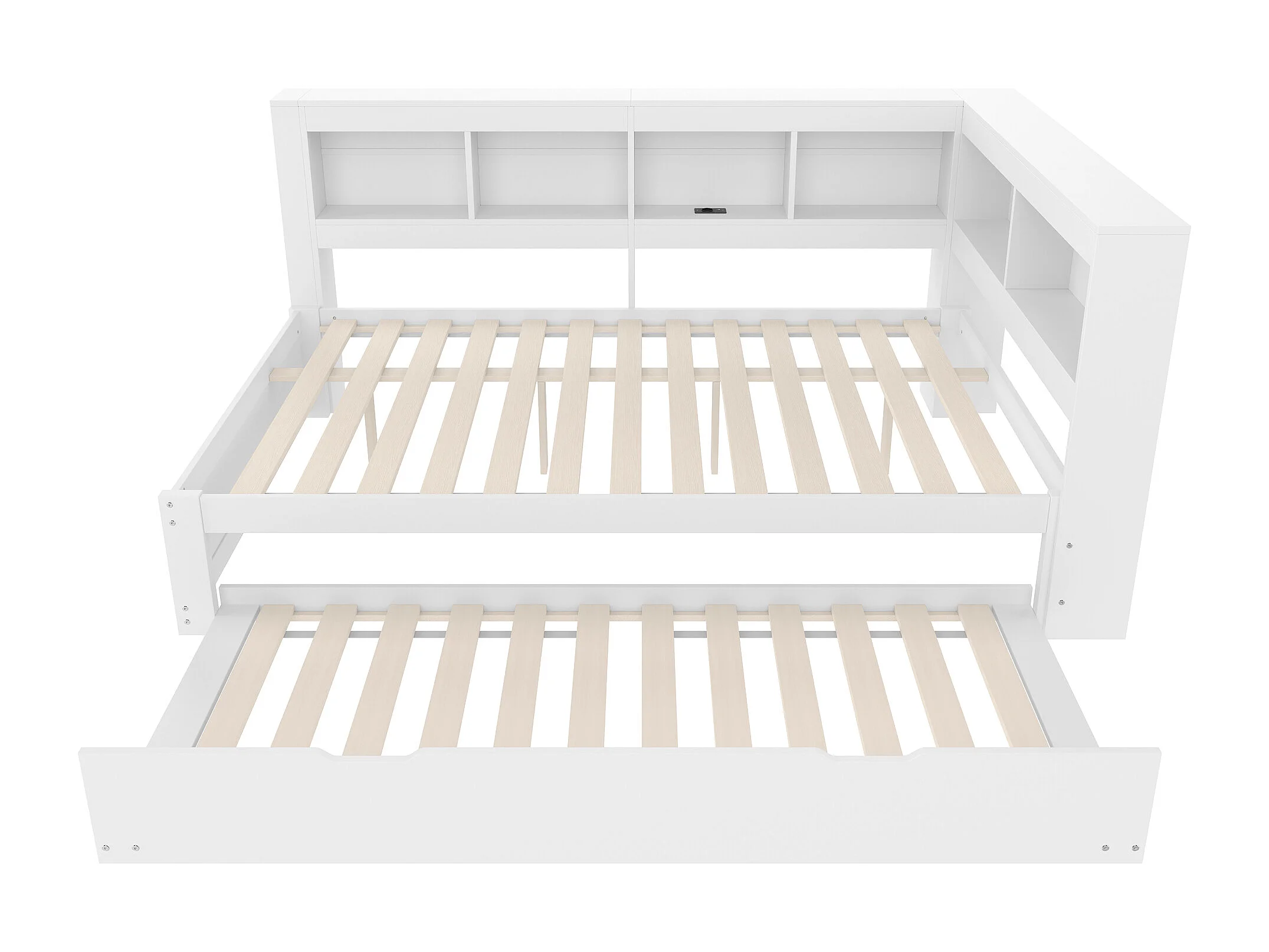 Divano letto 140x200 cm - Con letto estraibile - con presa di corrente + 2 USB - con rete a doghe - bianco (materasso non incluso)