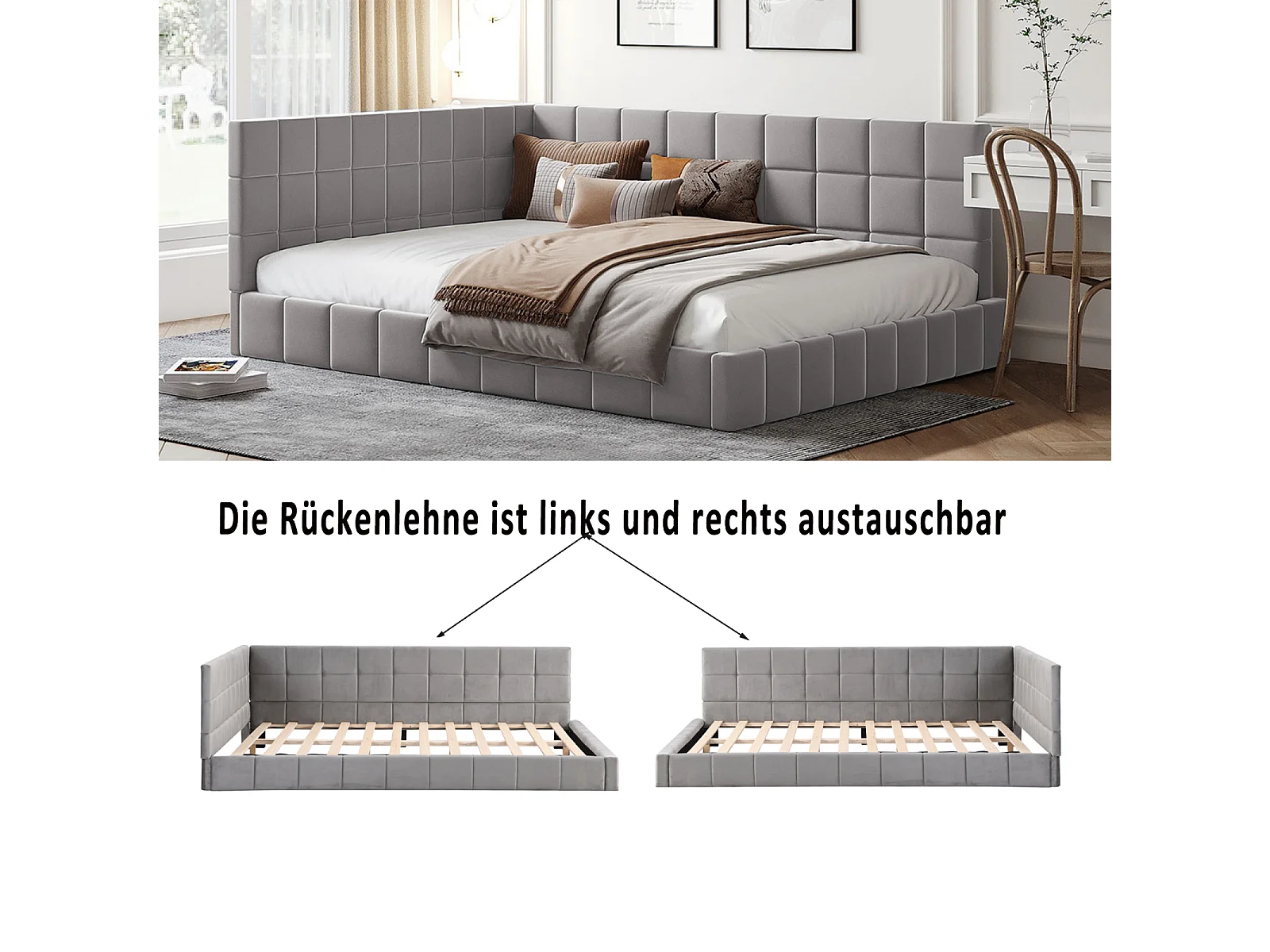Letto estraibile imbottito 140x200cm, divano letto, rete a doghe, letto per adulti, velluto, grigio