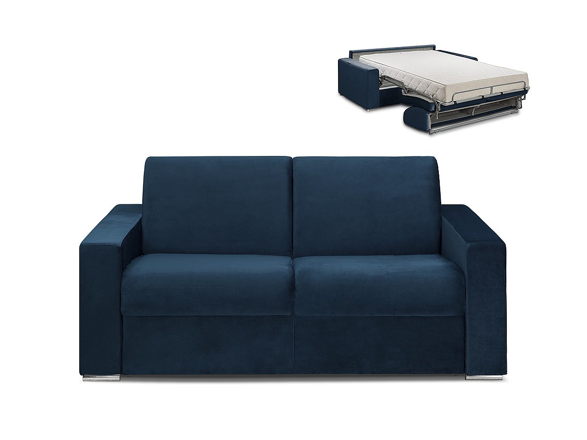 Divano letto 2 posti a ribalta in velluto Blu notte - Larghezza Materasso 120 cm - Spessore 22 cm - CALITO