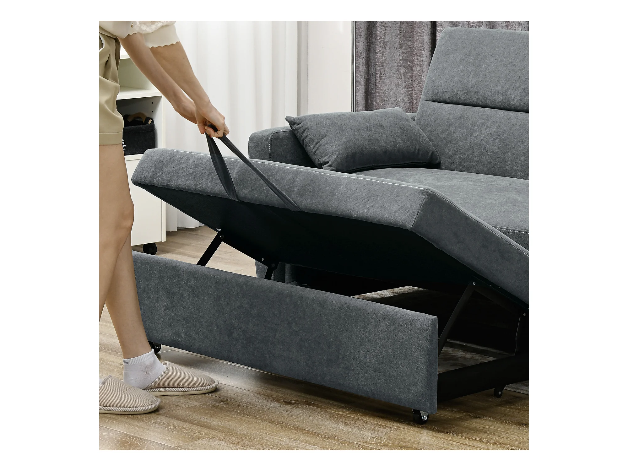 Divano dritto grigio - Divano pieghevole con porta telefono e tasca portaoggetti - schienale regolabile - per soggiorno e camera da letto