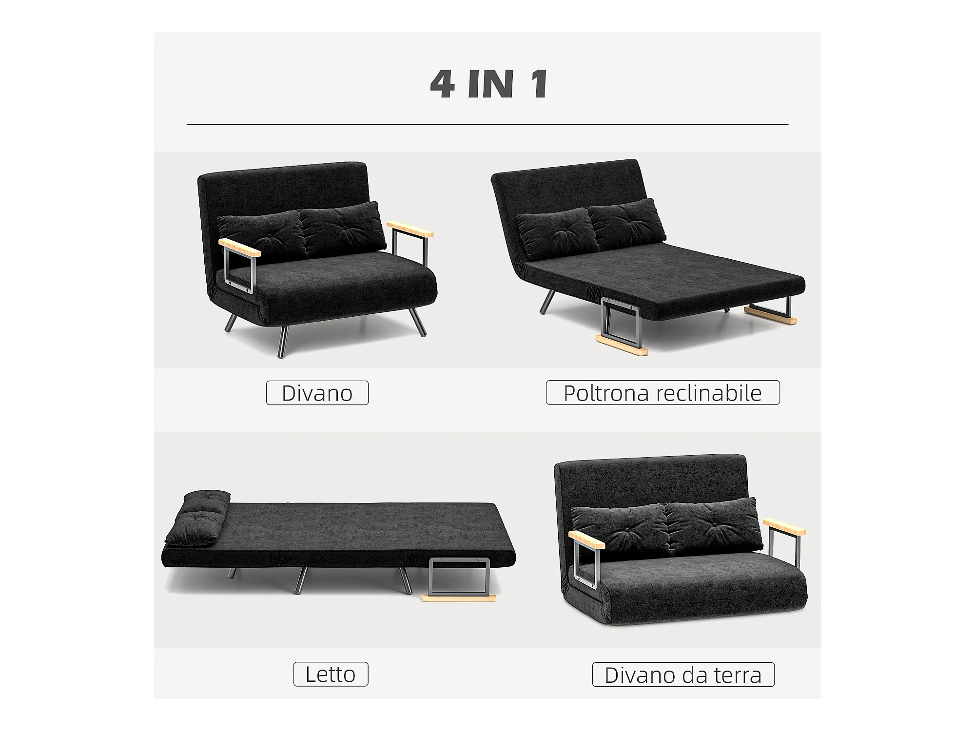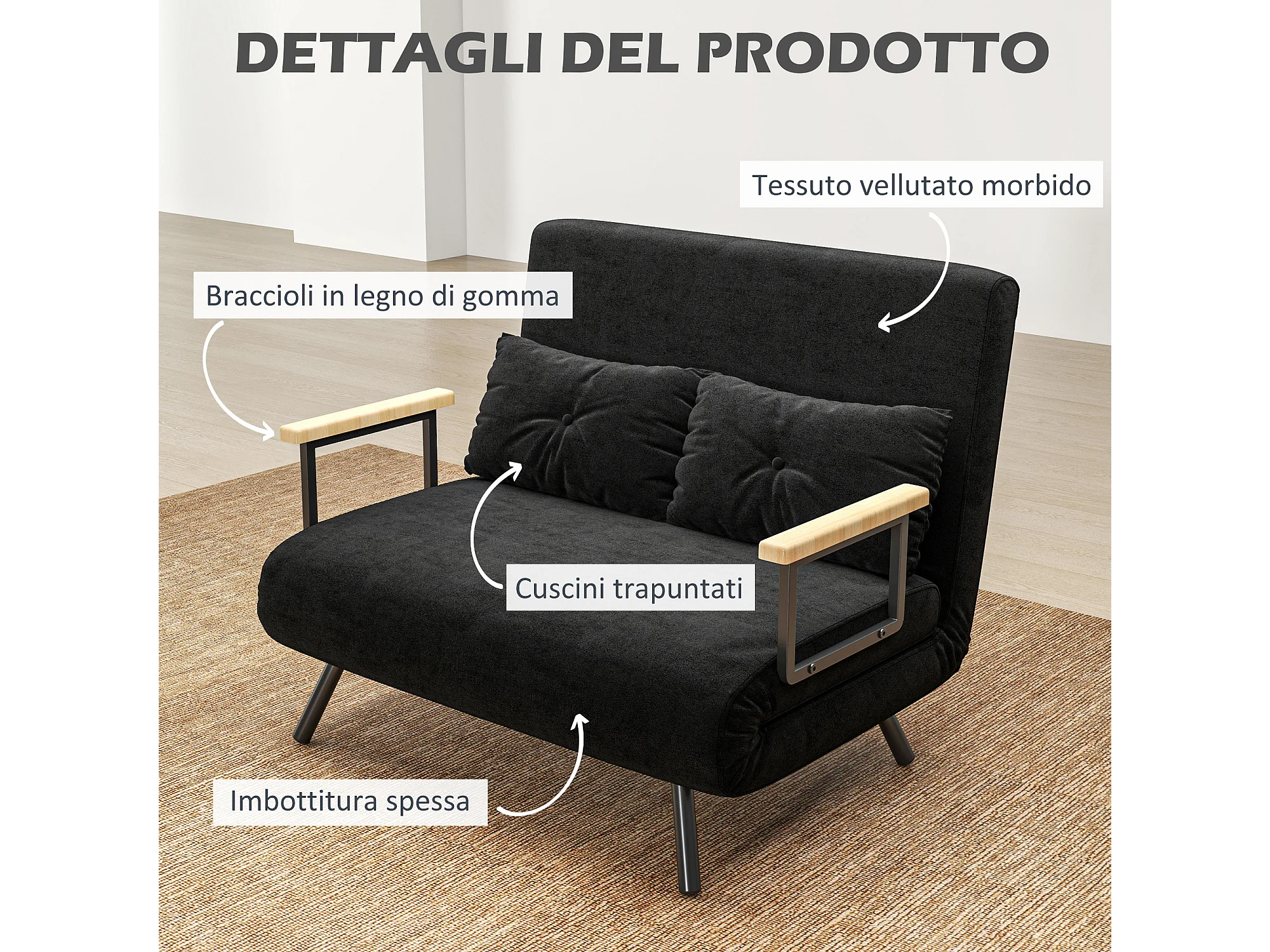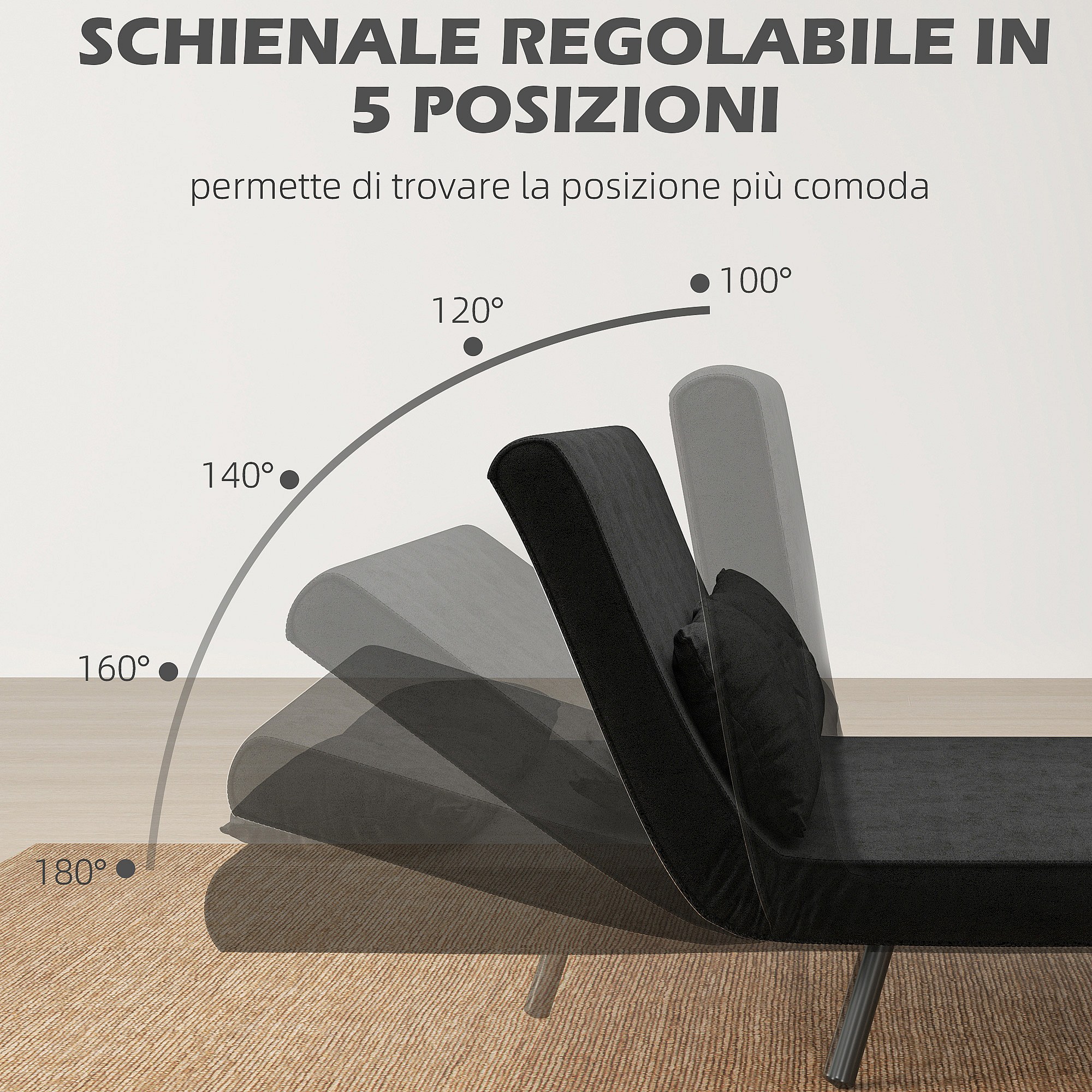 Divano letto 3 in 1 vellutato con schienale regolabile 5 livelli nero