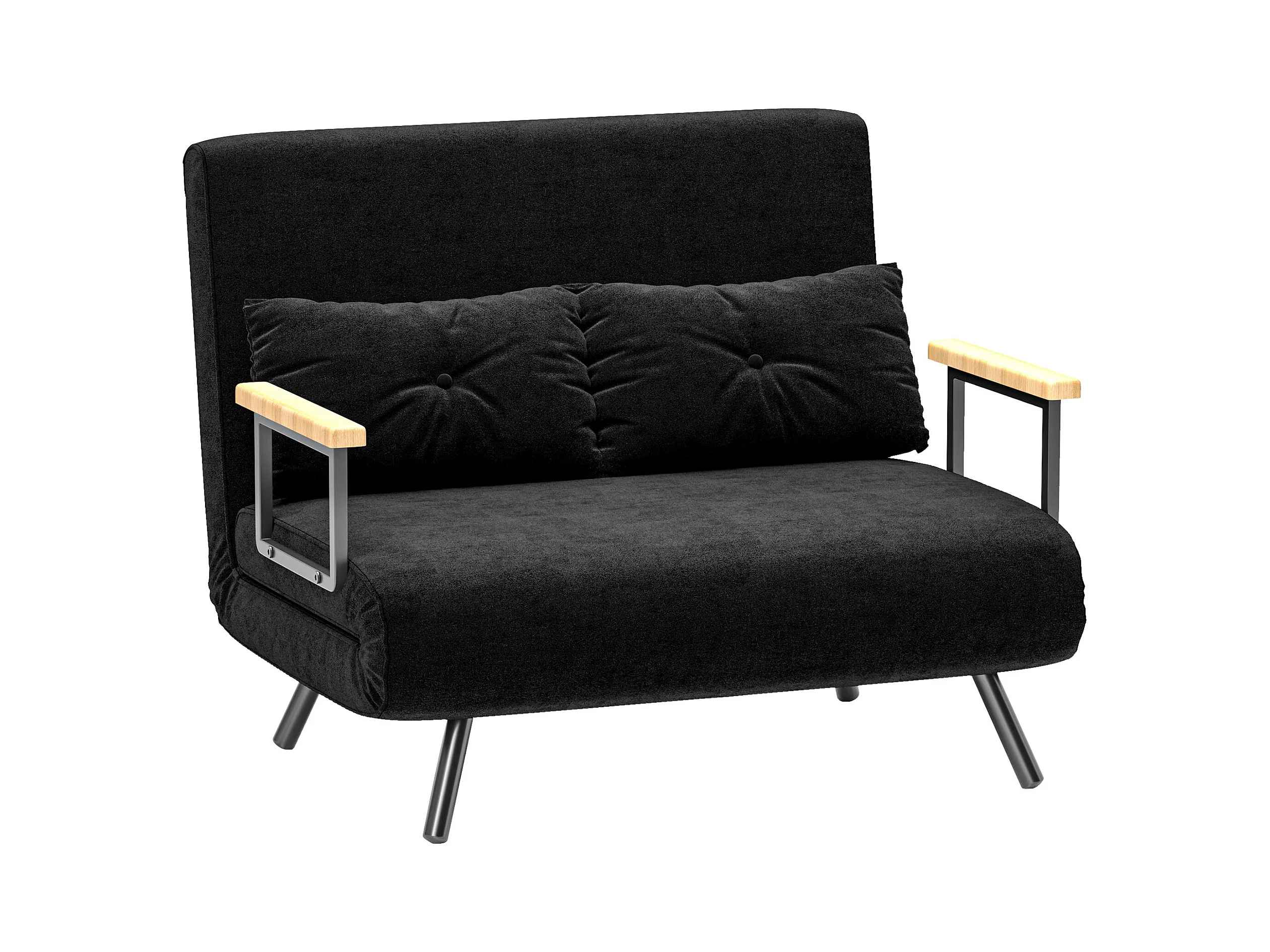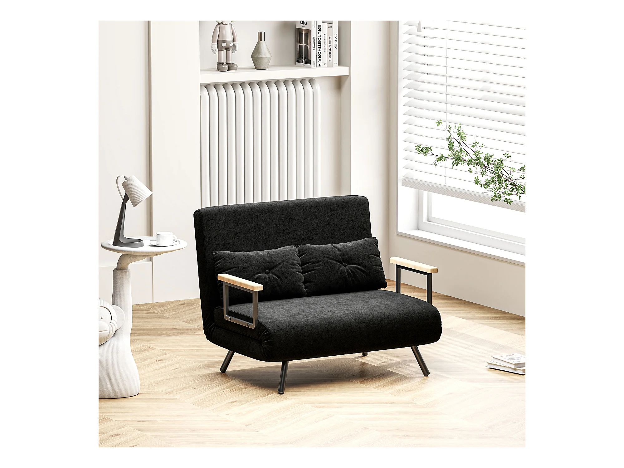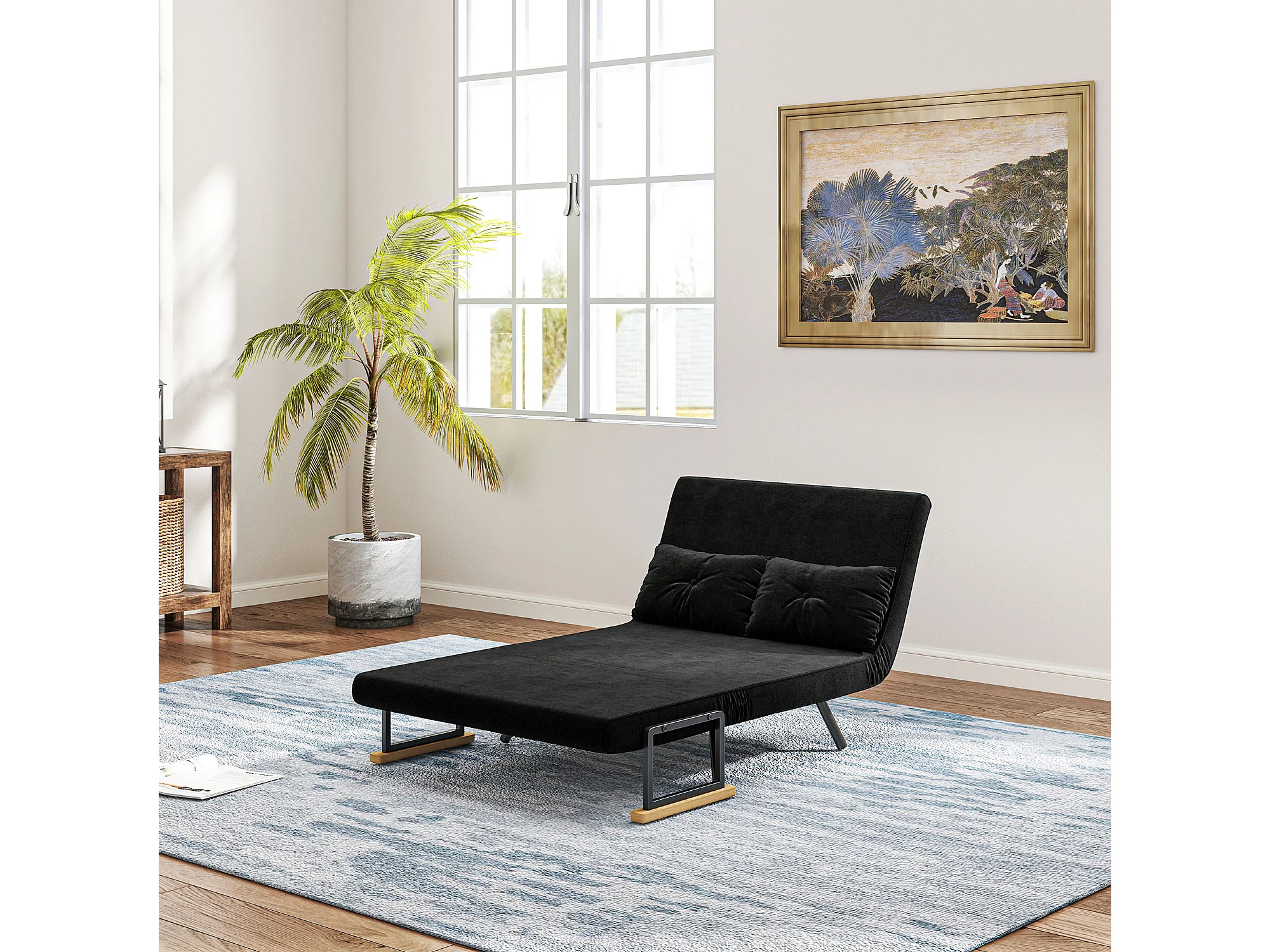 Divano letto 3 in 1 vellutato con schienale regolabile 5 livelli nero