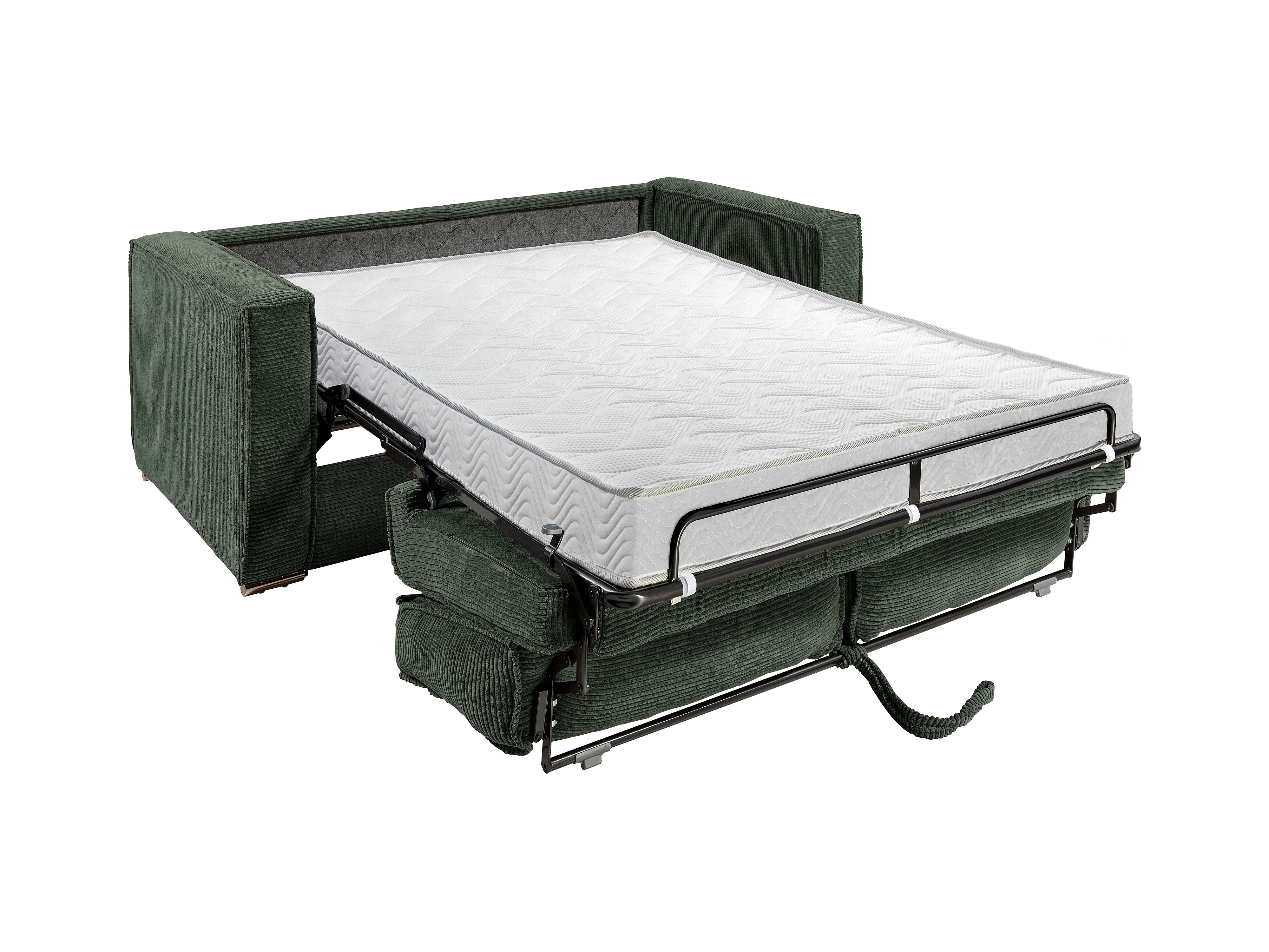 Divano letto 3 posti a ribalta Letto doghe larghe 140cm Materasso 14cm in Velluto coste Verde abete - LORETO