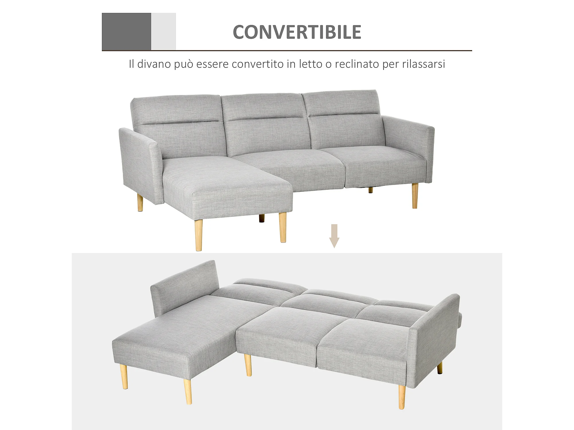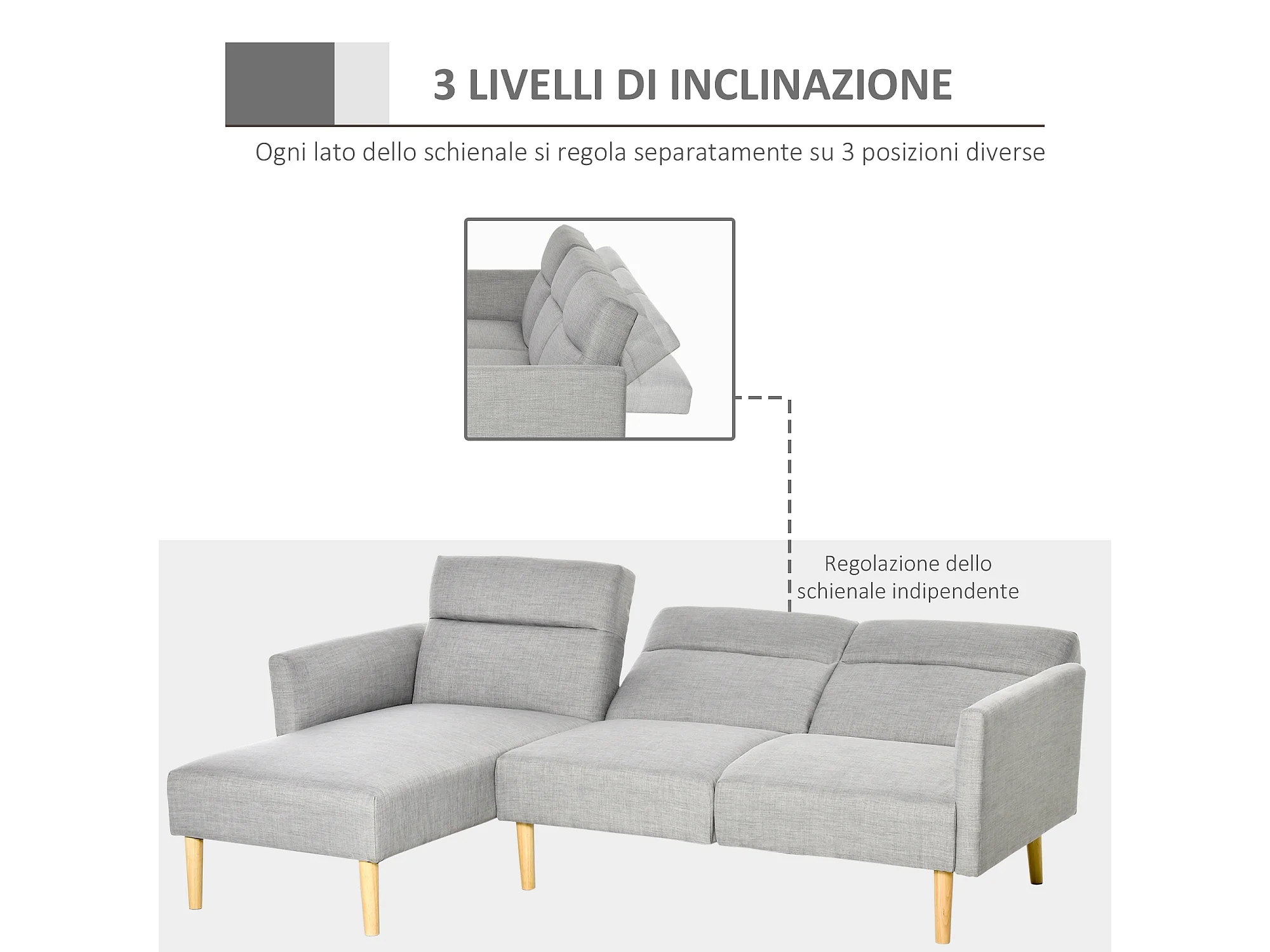 Divano letto 3 posti angolare scandinavo schienale regolabile
