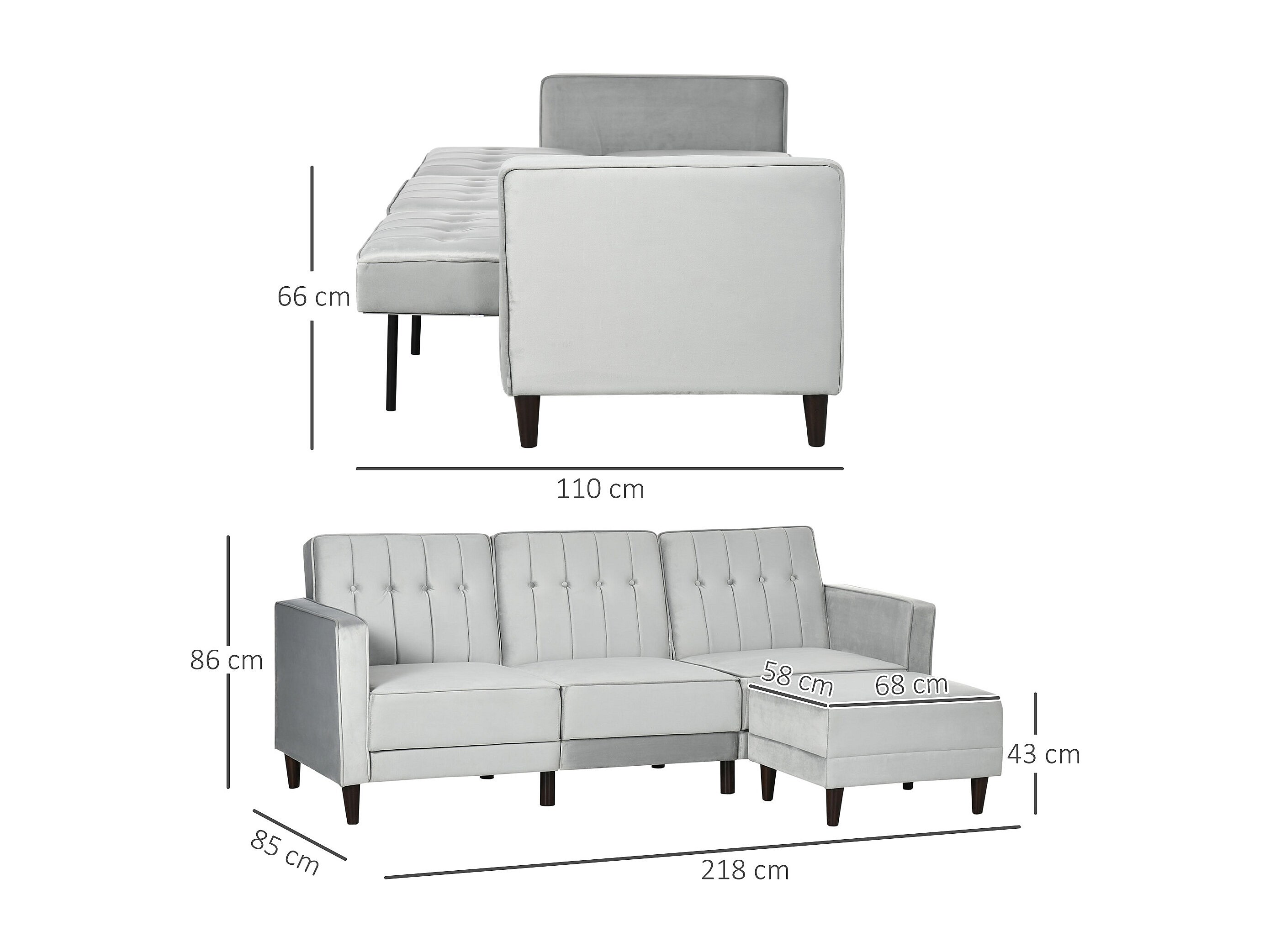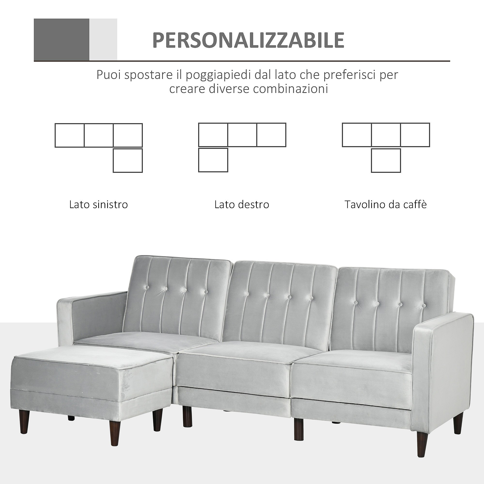 Divano letto 3 posti con poggiapiedi e schienale reclinabile