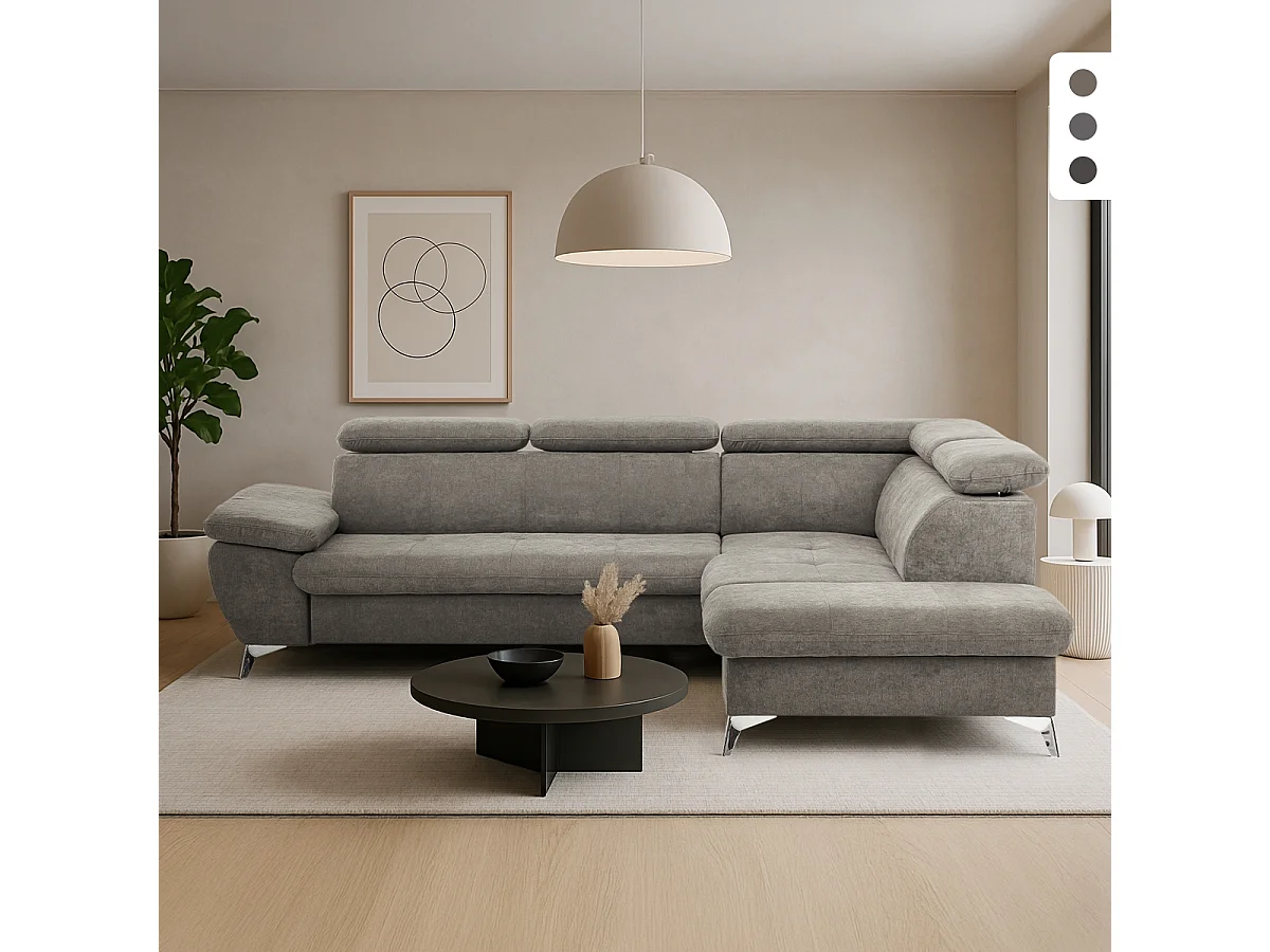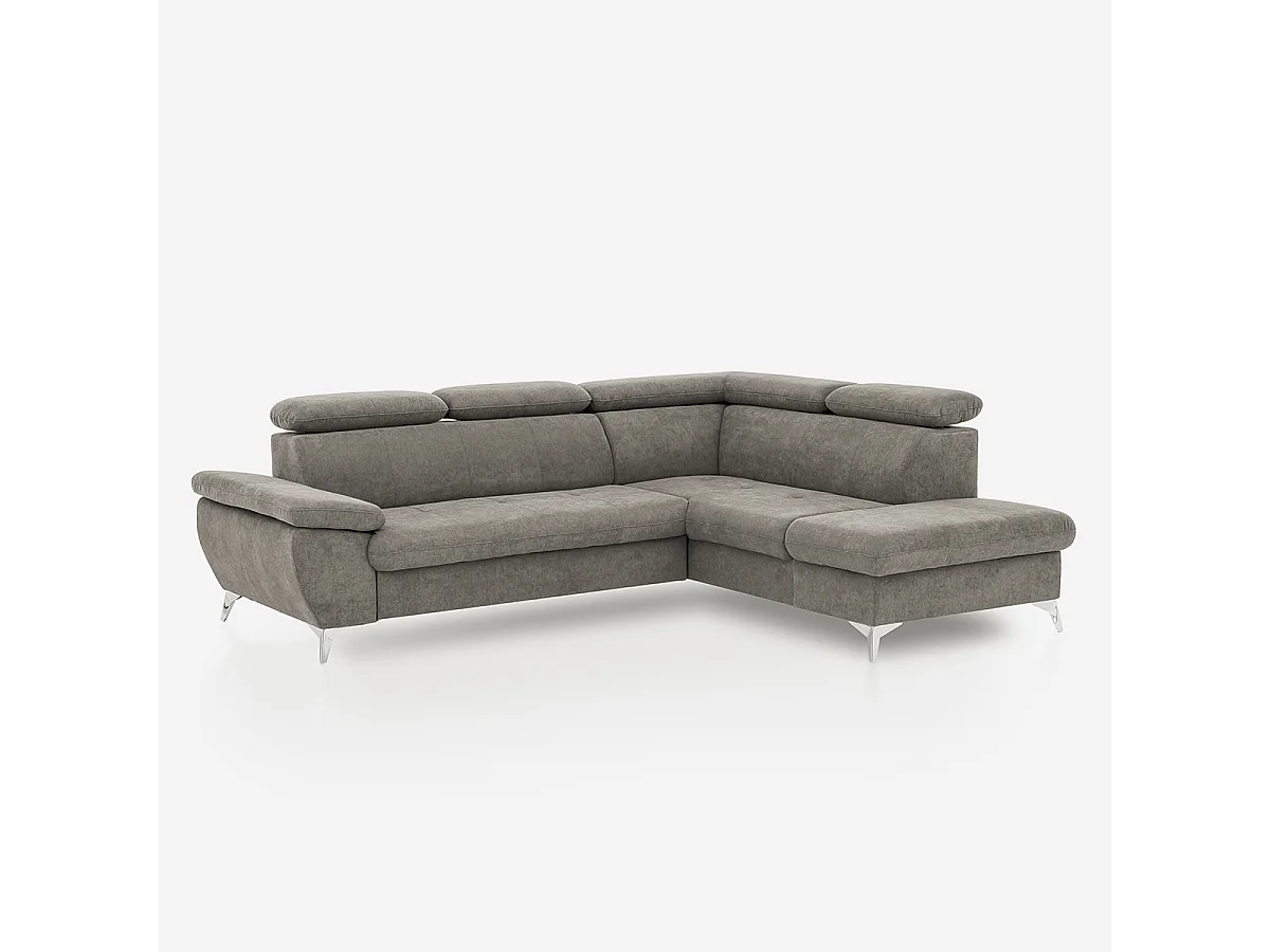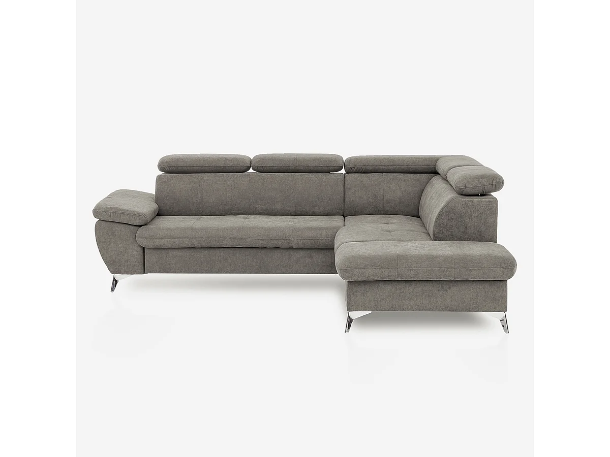 Divano letto 3 posti regolabile con penisola destra contenitore Tova - Grigio
