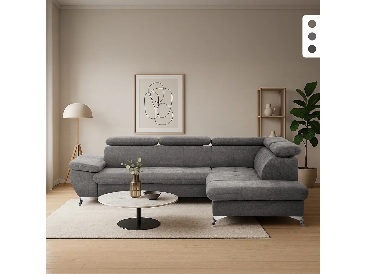 Divano 3 posti con penisola a sinistra e poggiatesta regolabile Tivon - Antracite