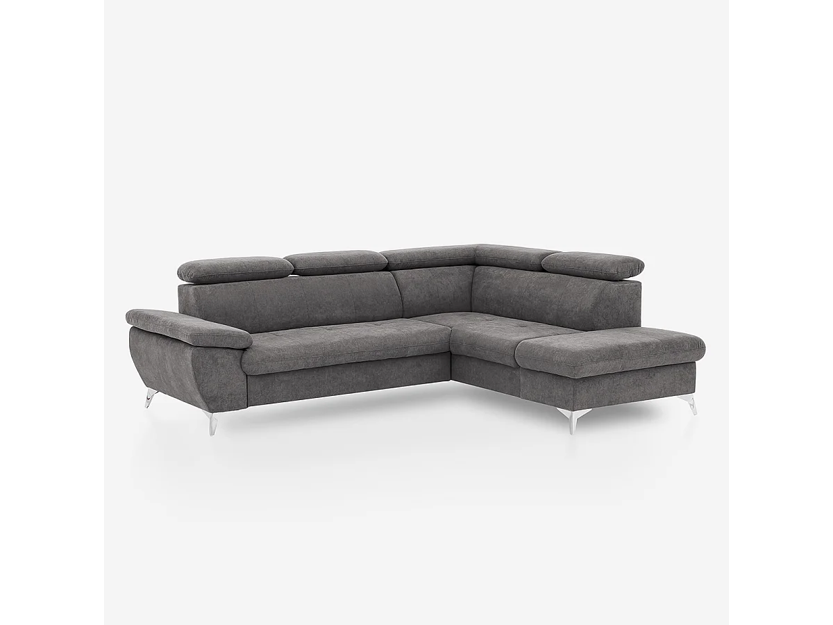 Divano angolare 3 posti moderno in tessuto con penisola a destra Rocca - Grigio Scuro