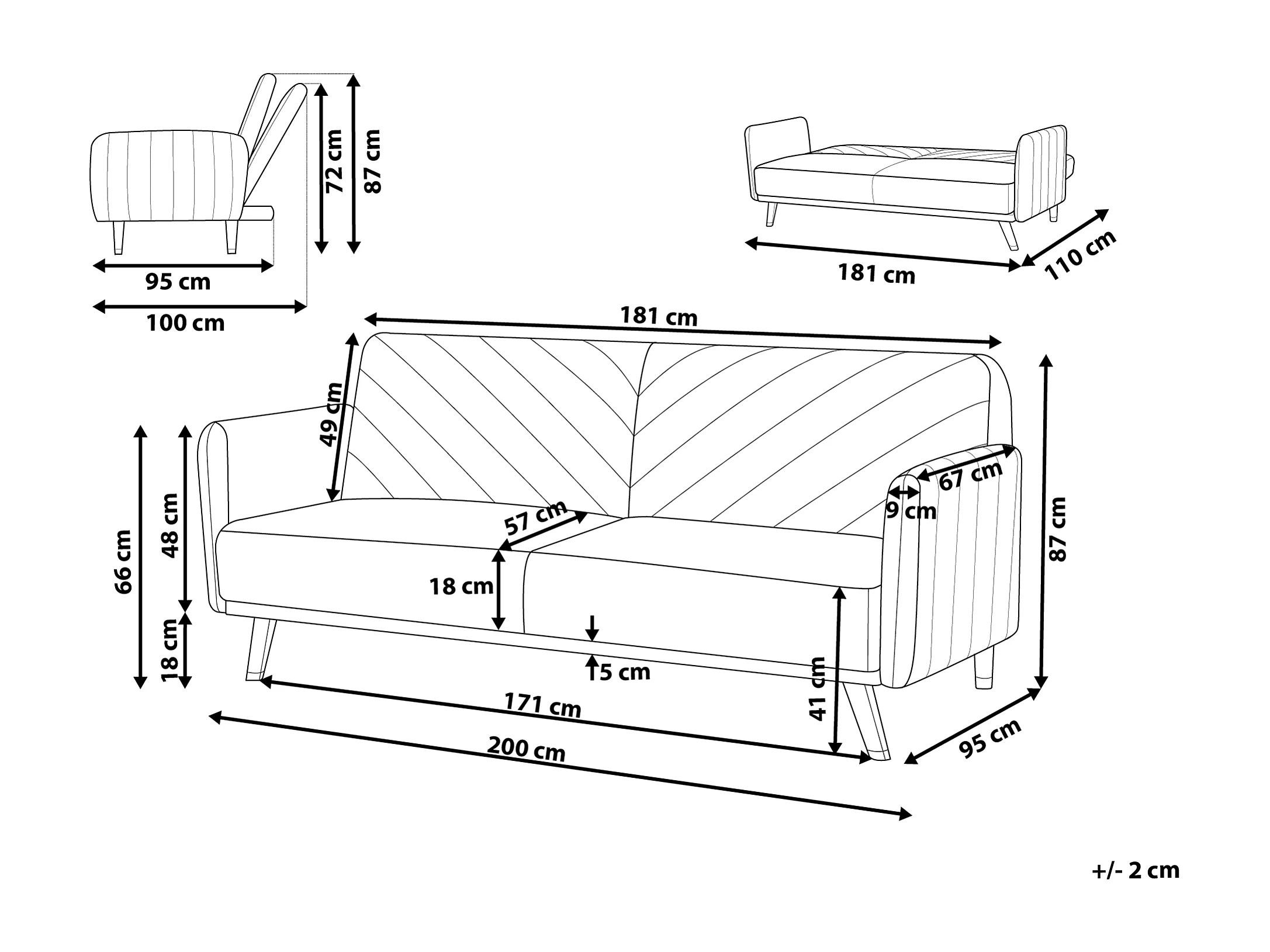Divano letto SENJA Velluto Nero 3 posti