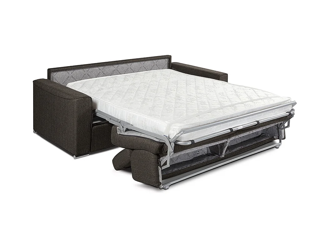 Divano letto 4 posti a ribalta letto con doghe larghe + materasso 160 cm + 14 cm in Tessuto Marrone - VIZIR