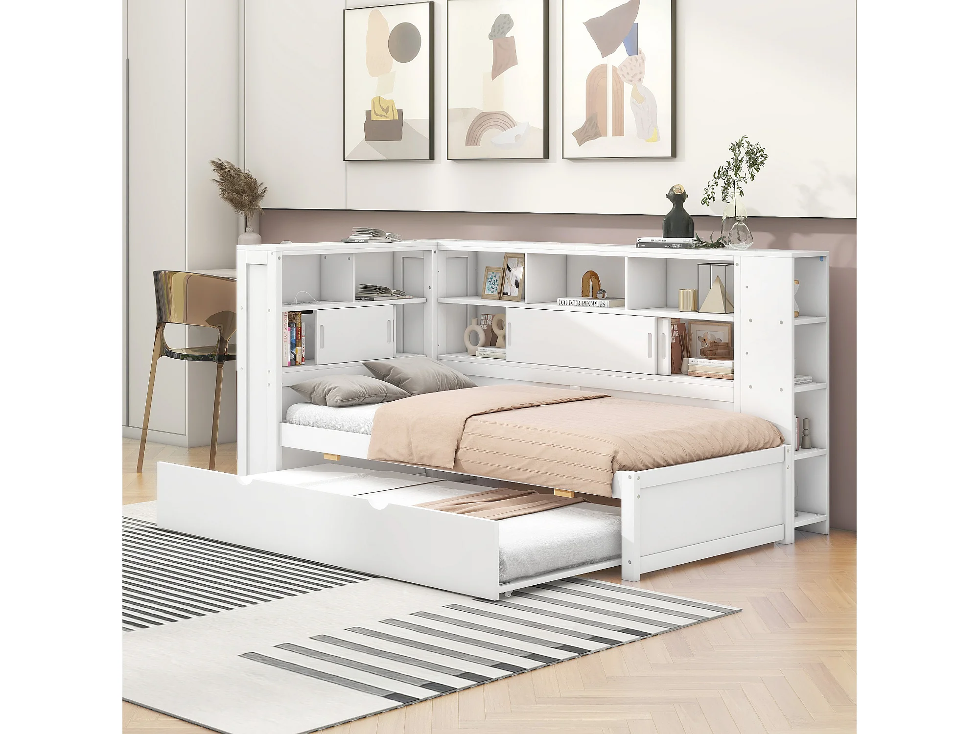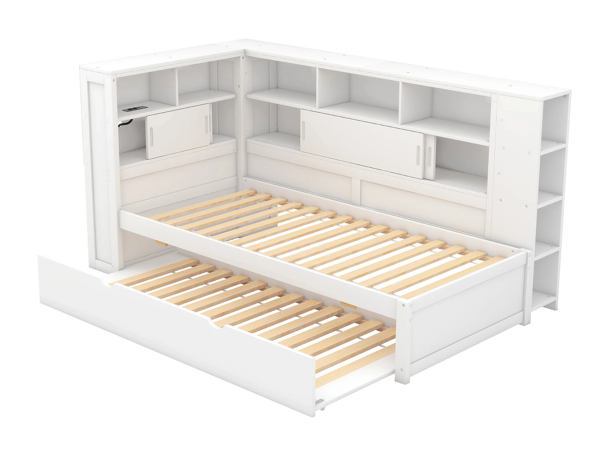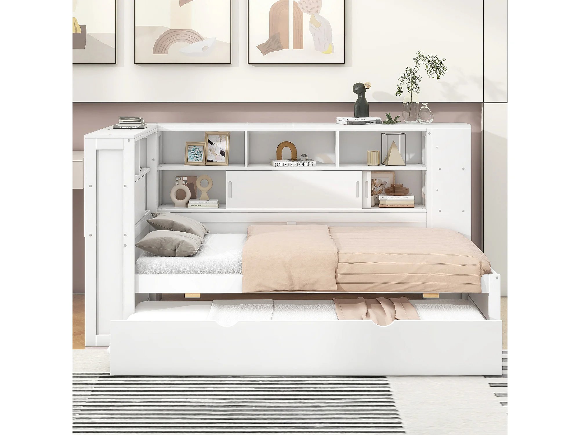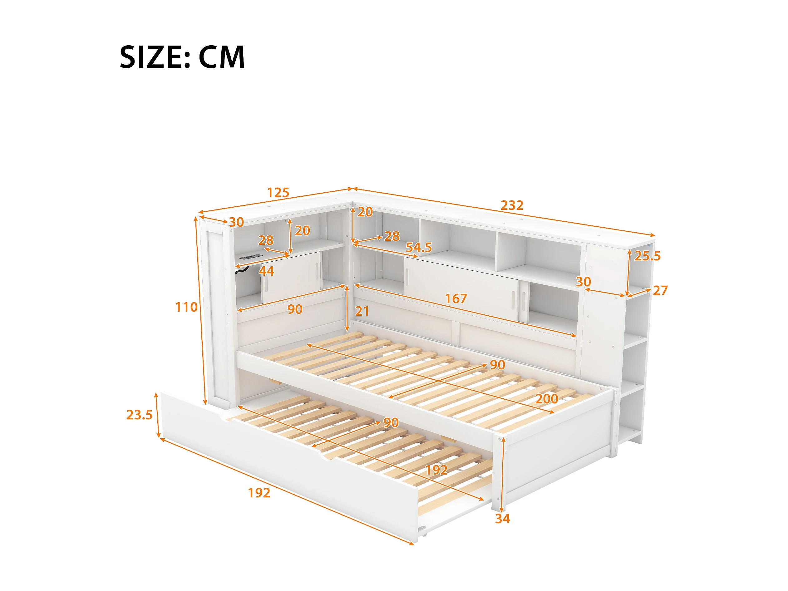 Divano letto 90x200cm con letto estraibile 90x190cm - contenitore e porta USB - Bianco