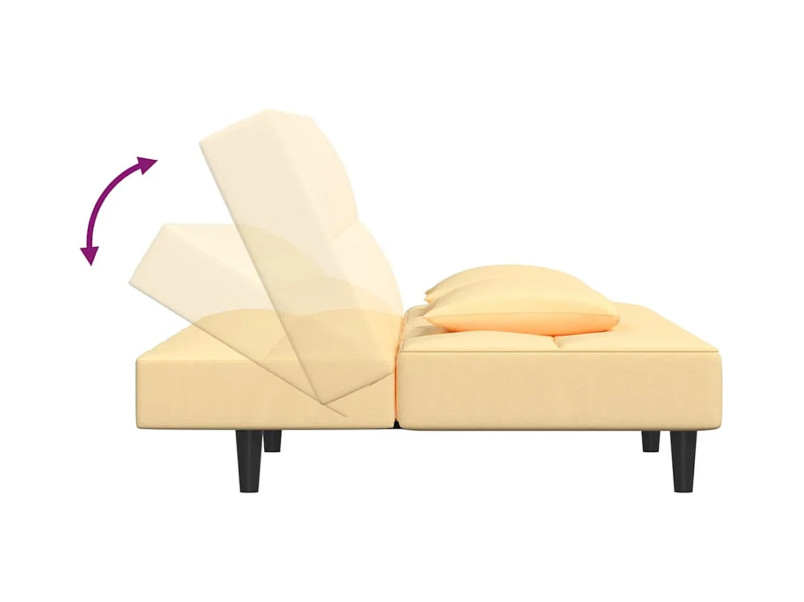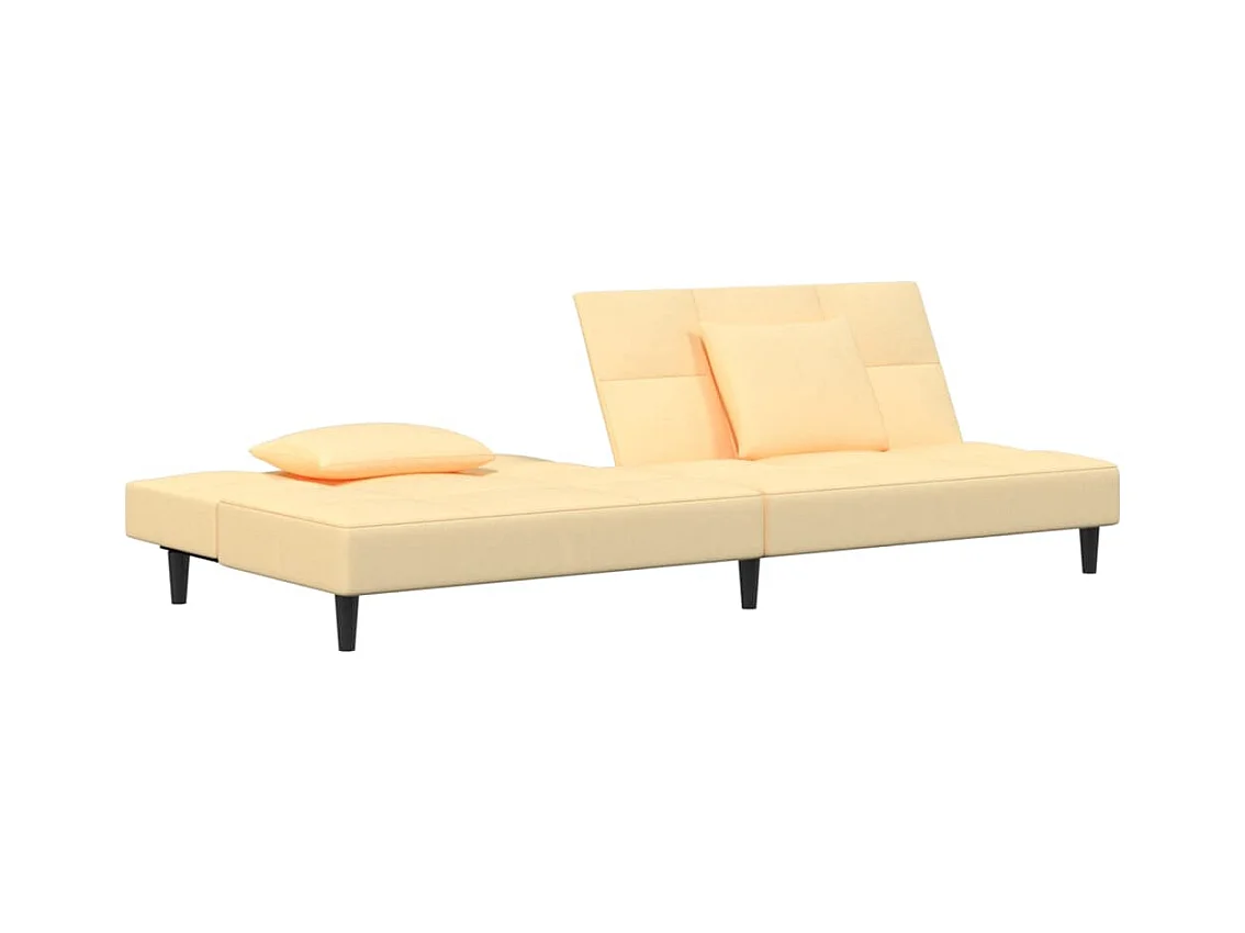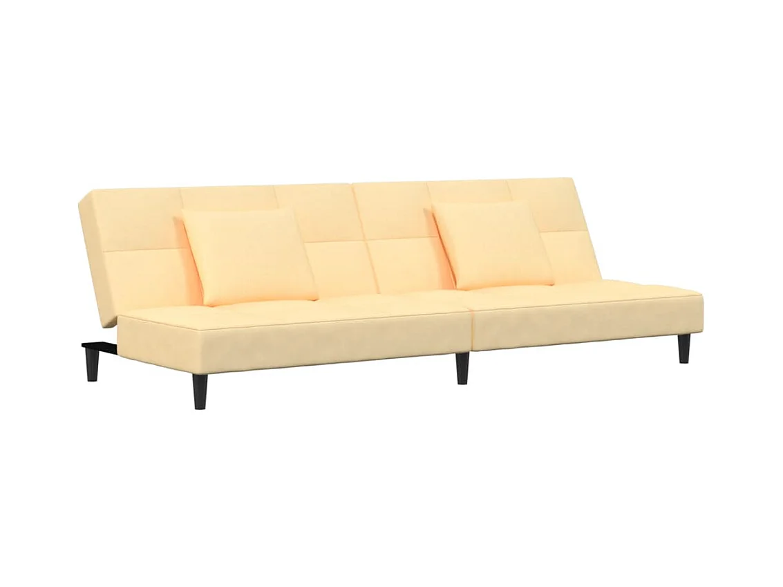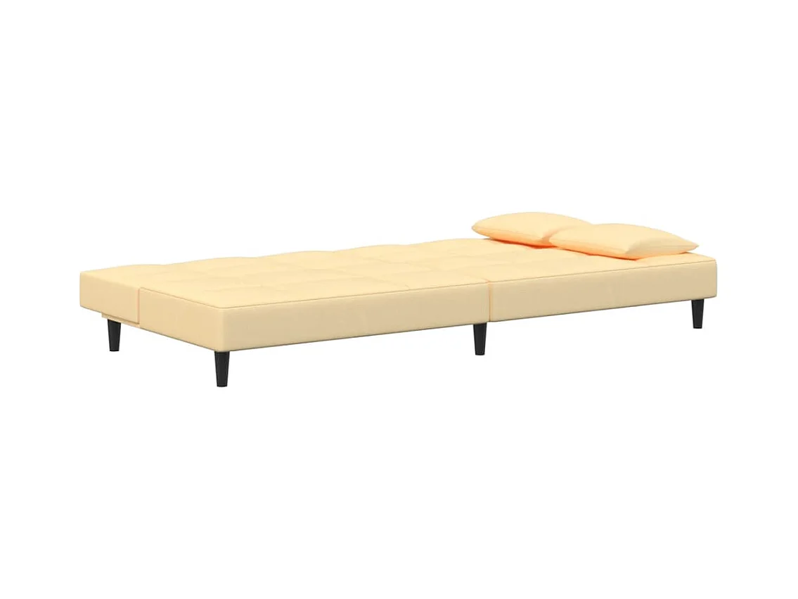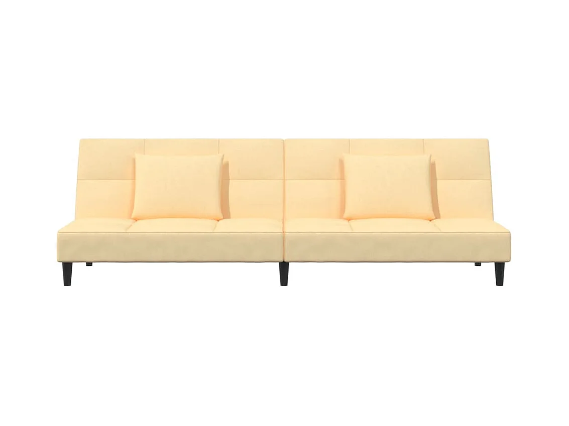 Divano Letto a 2 Posti con 2 Cuscini Crema in Tessuto
