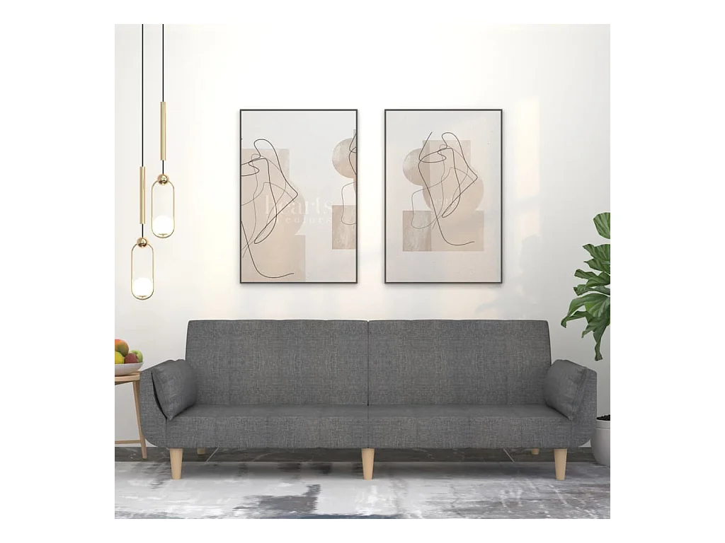 Divano Letto a 2 Posti con 2 Cuscini Grigio Chiaro in Tessuto