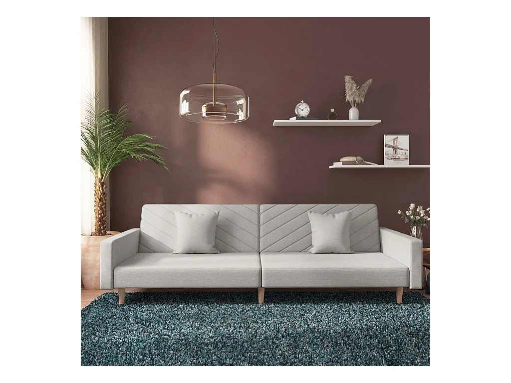Divano Letto a 2 Posti con 2 Cuscini Grigio Chiaro in Tessuto