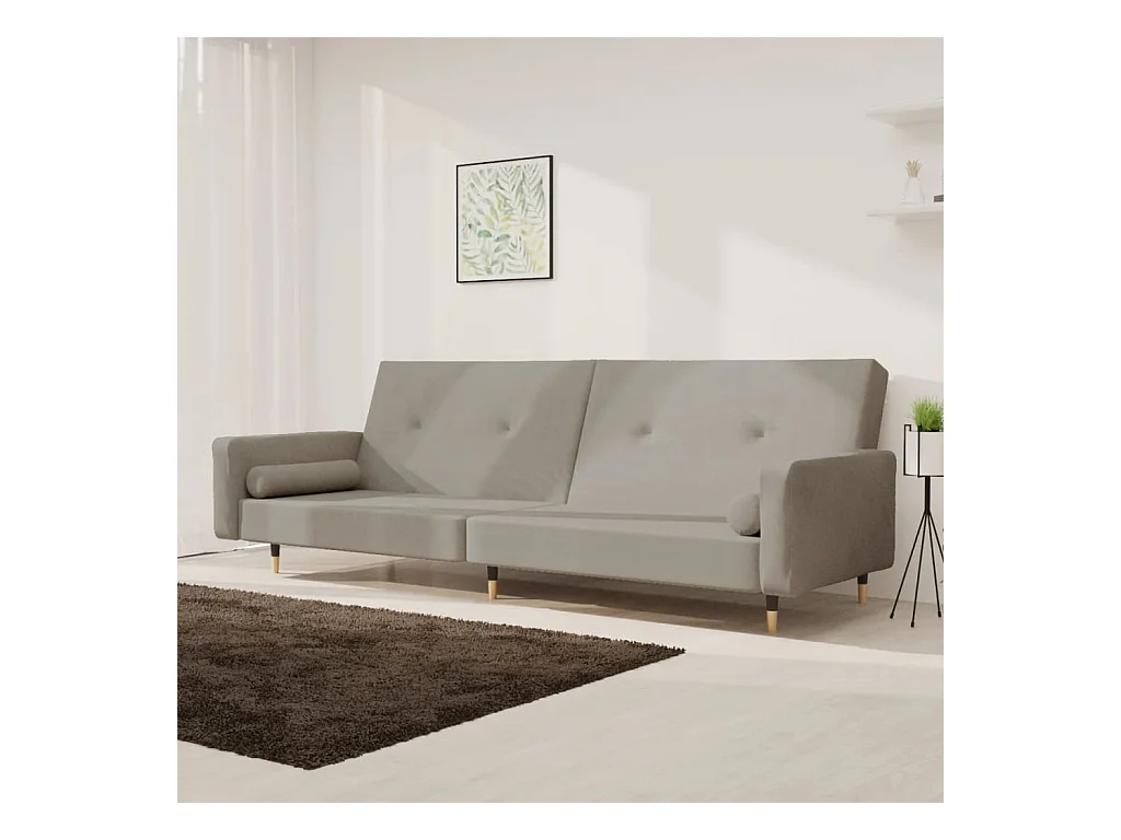 Divano Letto a 2 Posti con 2 Cuscini Grigio Chiaro in Velluto