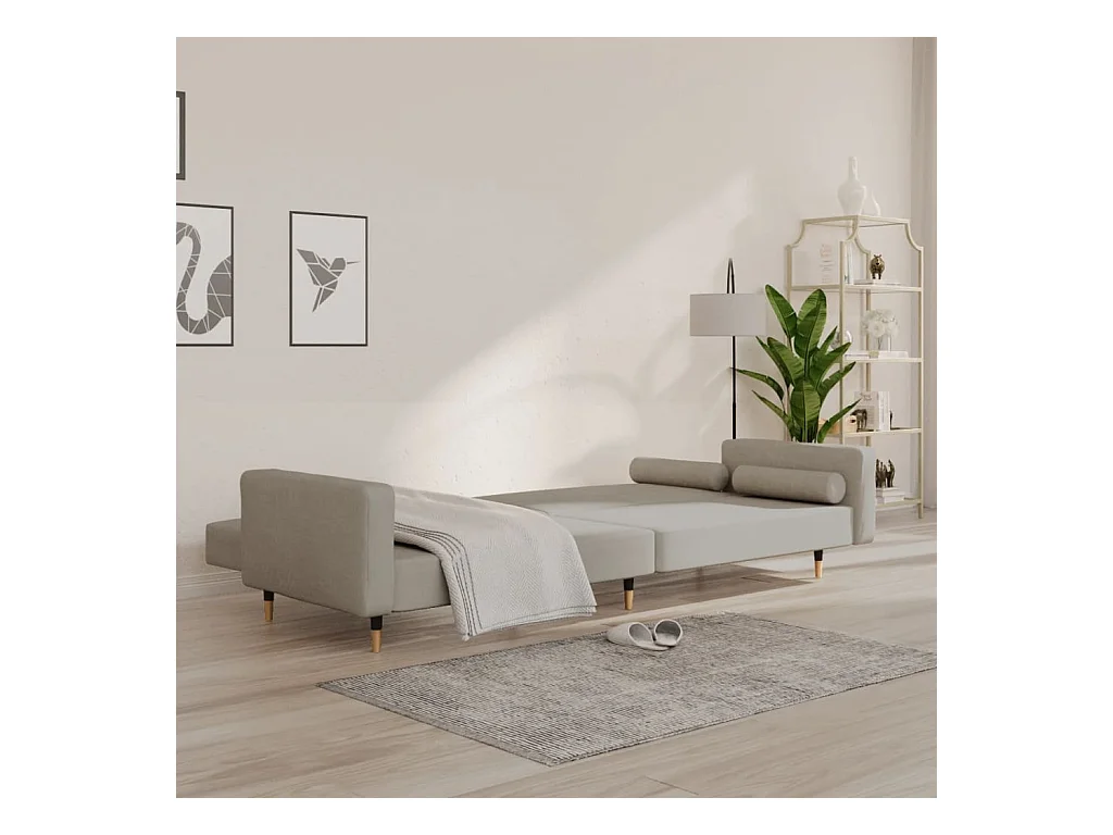 Divano Letto a 2 Posti con 2 Cuscini Tortora in Tessuto