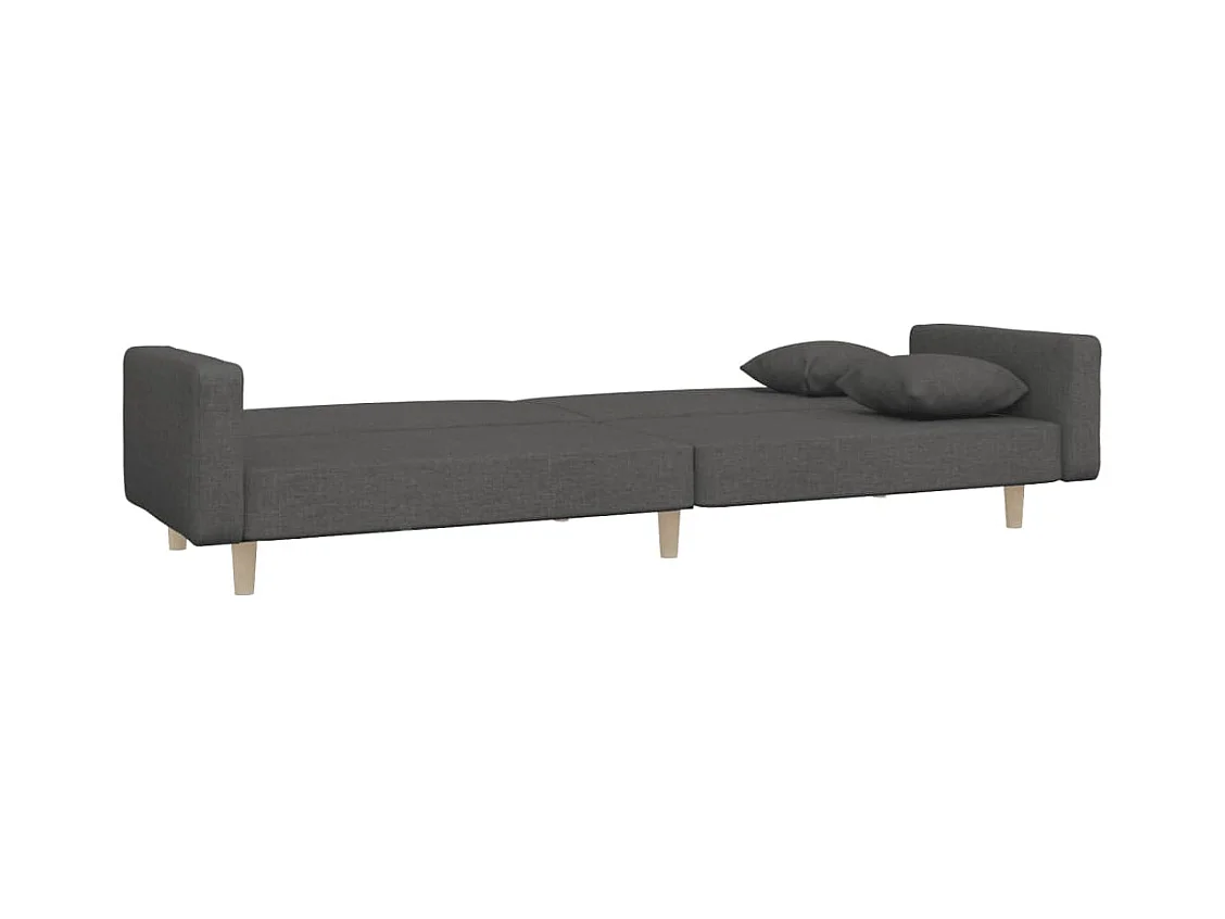 Divano Letto a 2 Posti con 2 Cuscini Grigio Scuro in Tessuto