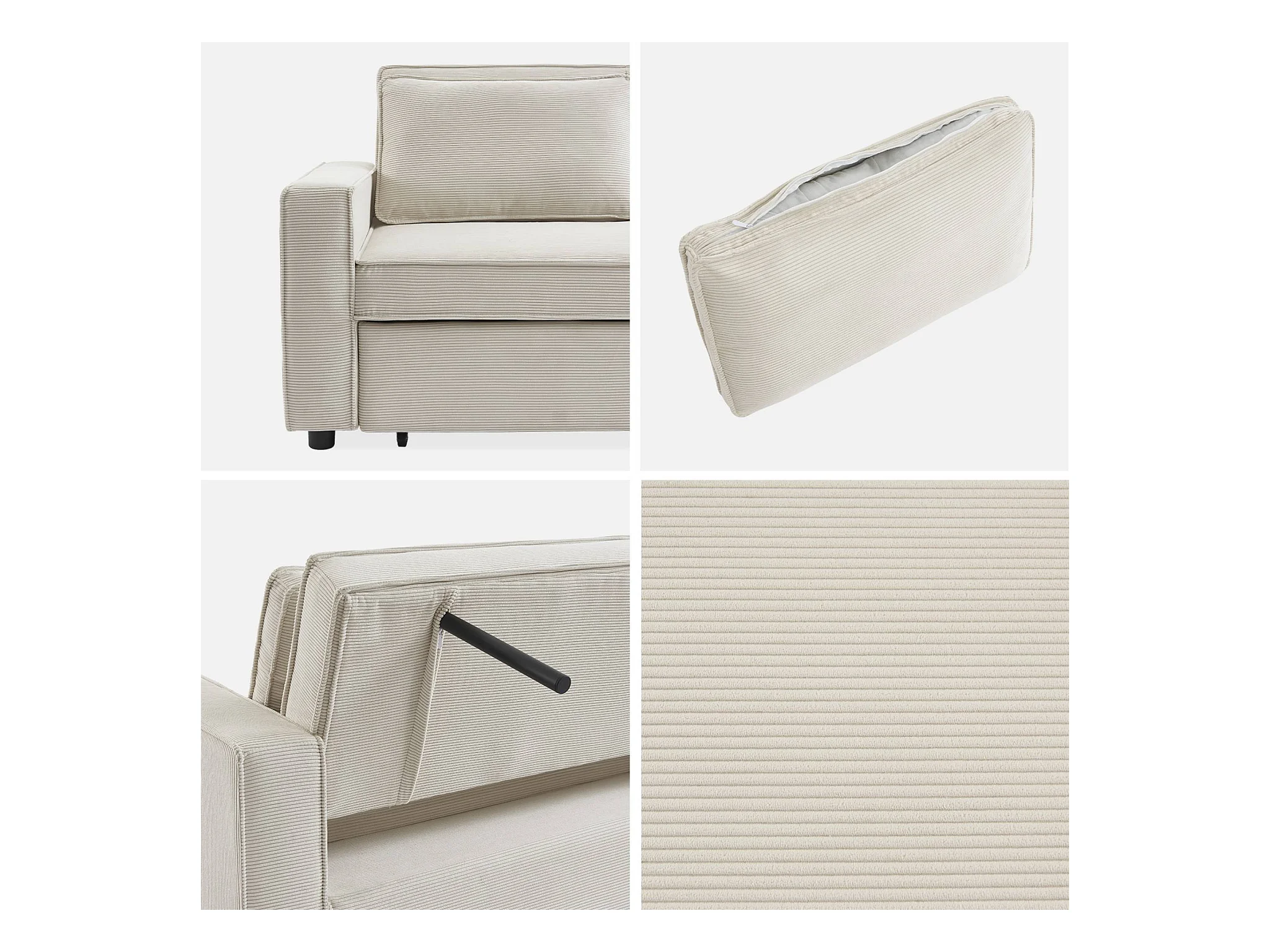 Divano angolare retrattile a L - con spazio di archiviazione - con portabicchieri - porta di ricarica USB - con cuscini - beige