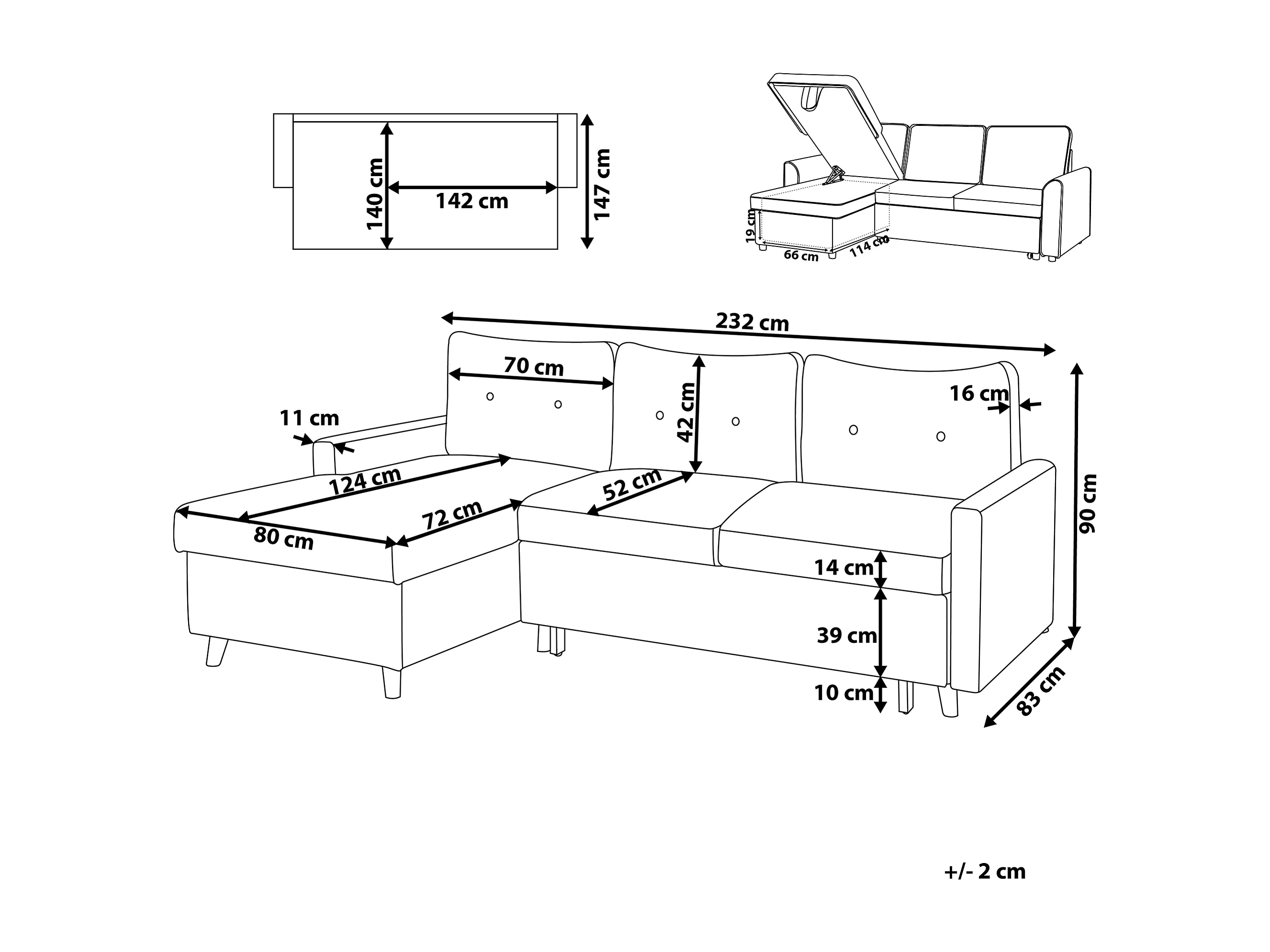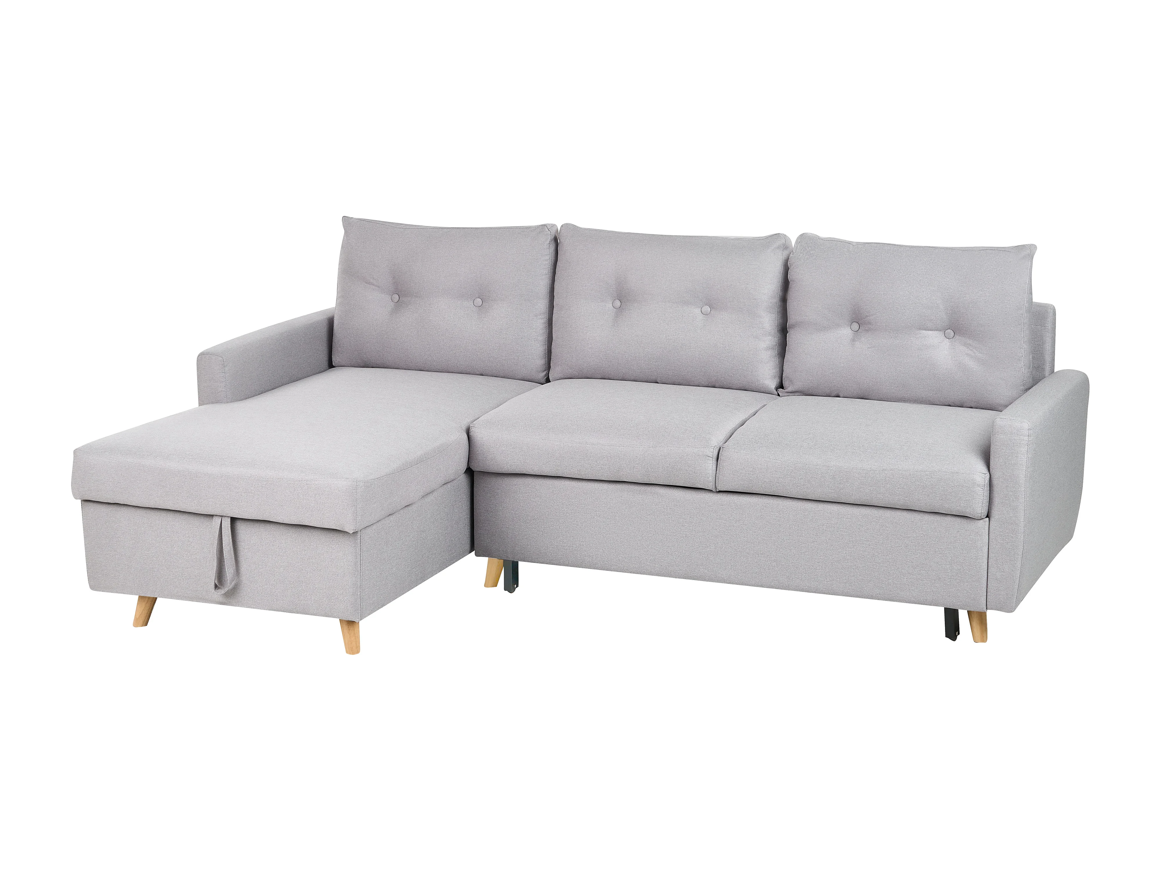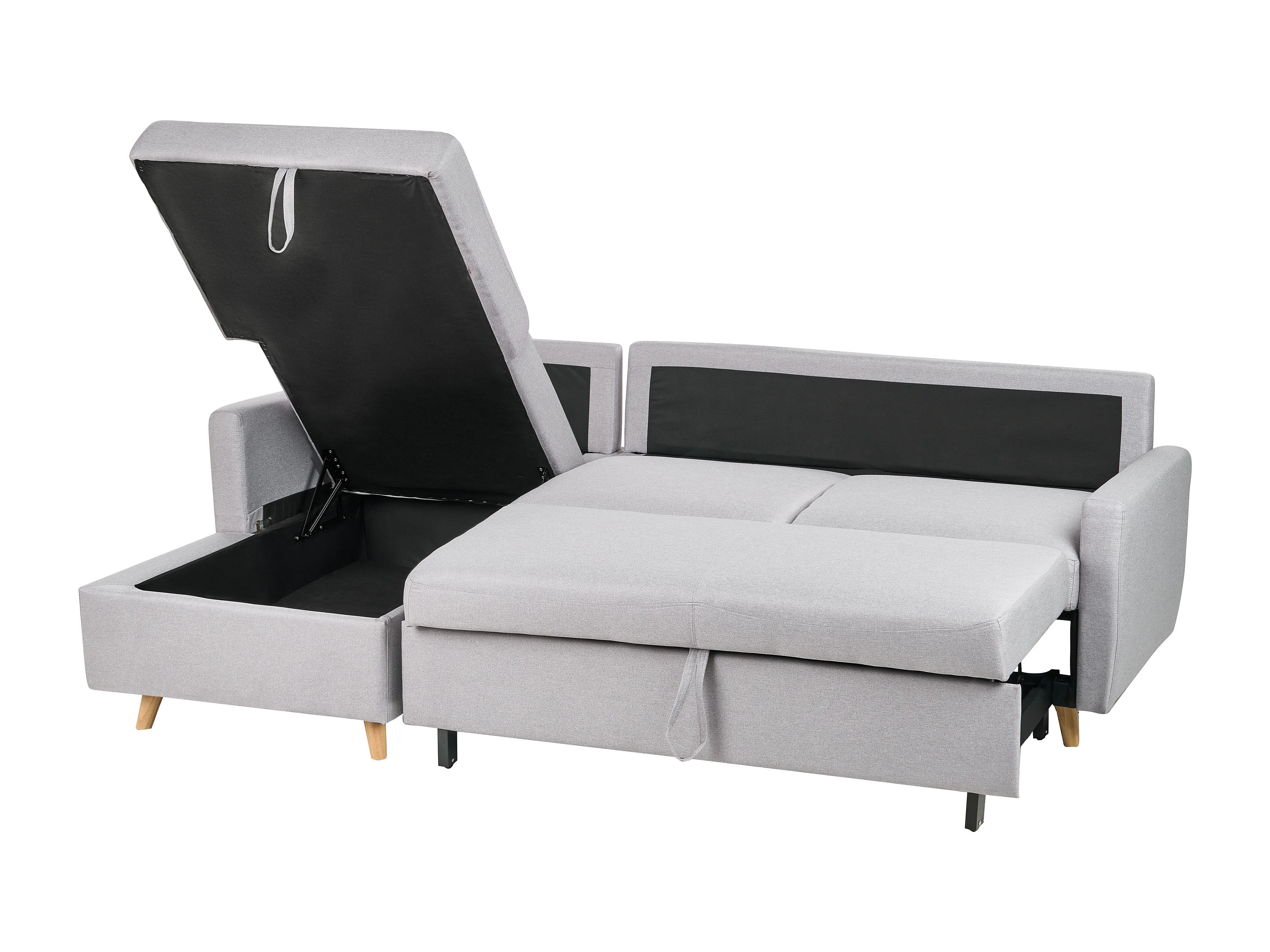 Divano letto angolare FLAKK Tessuto Grigio chiaro con contenitore 4 posti Lato destro