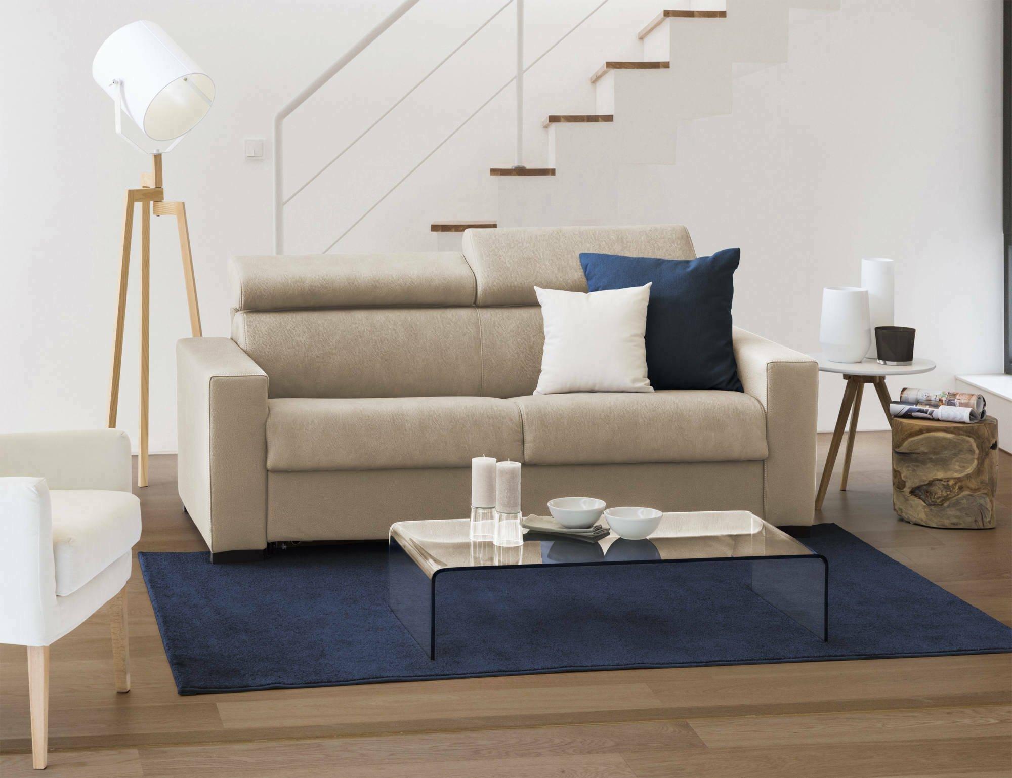 Divano Letto Aisha, Divano a 3 posti, 100% Made in Italy, Sofà Soggiorno con apertura girevole, con poggiatesta regolabili e Braccioli slim, Cm 200x95h85, Beige