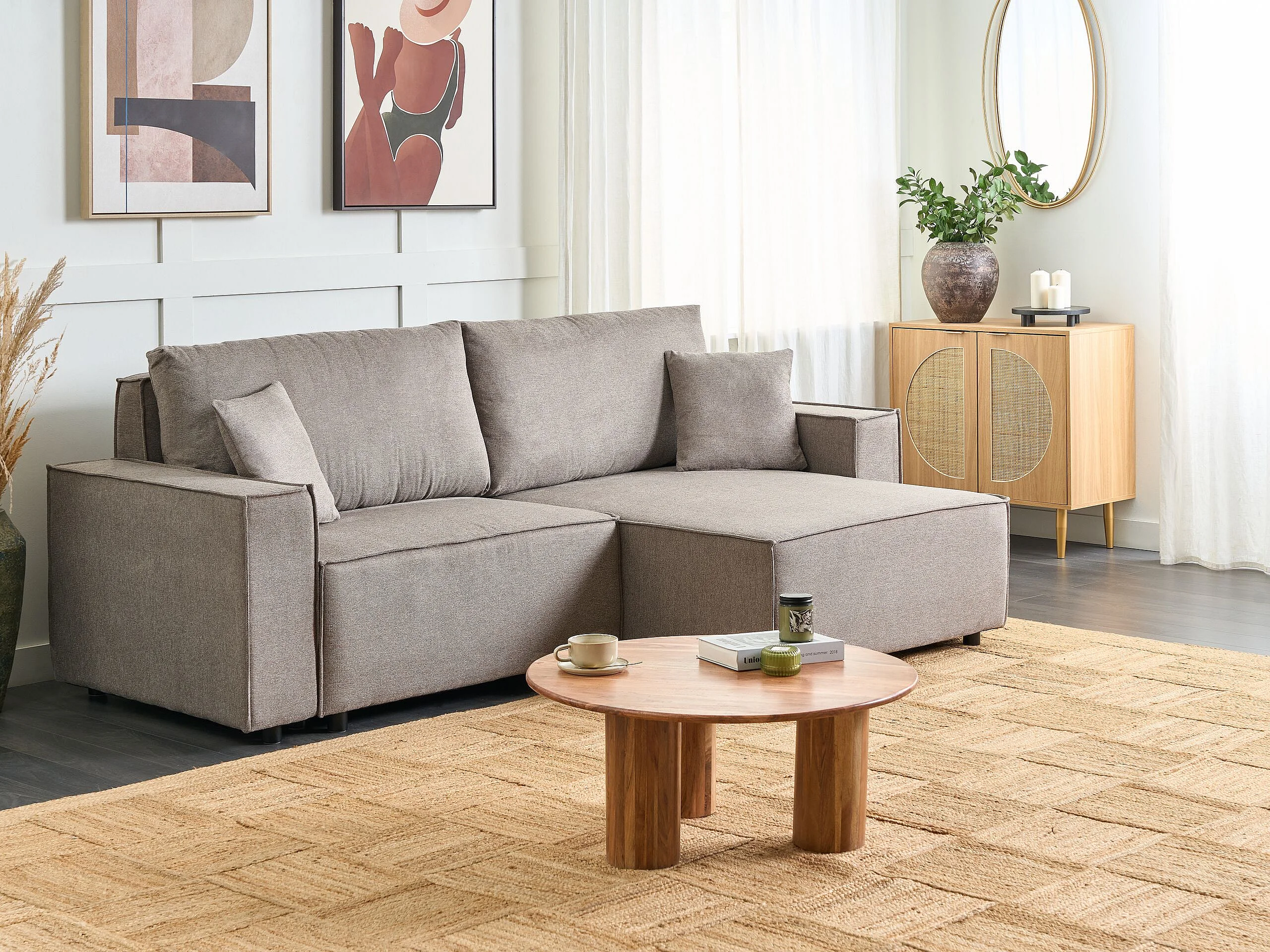 Divano letto KARILA Tessuto Tortora con contenitore 3 posti Lato Sinistro