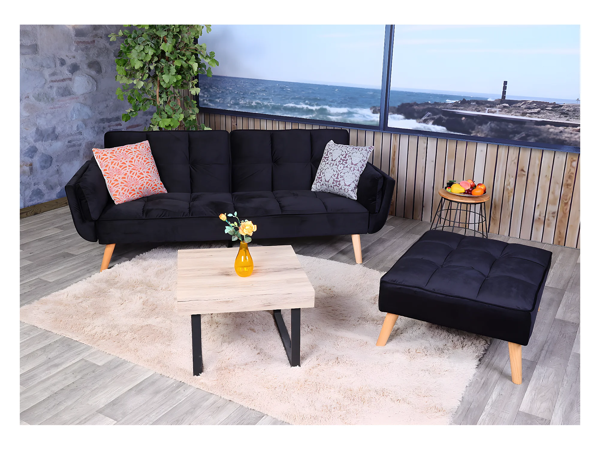 Divano Letto Convertibile 3 Posti Nero INVERNESS con Tavolino Centrale Ribaltabile - Comfort Ottimale e Design Moderno