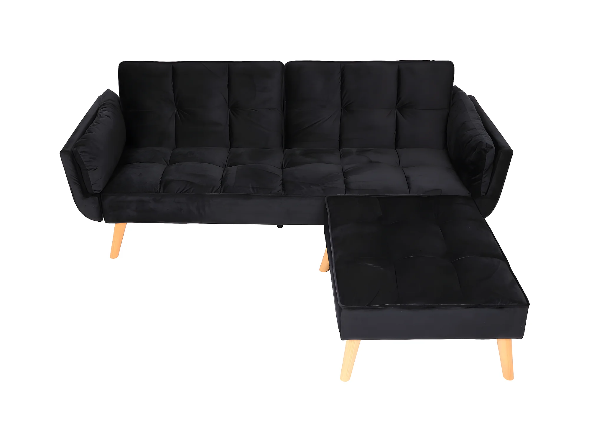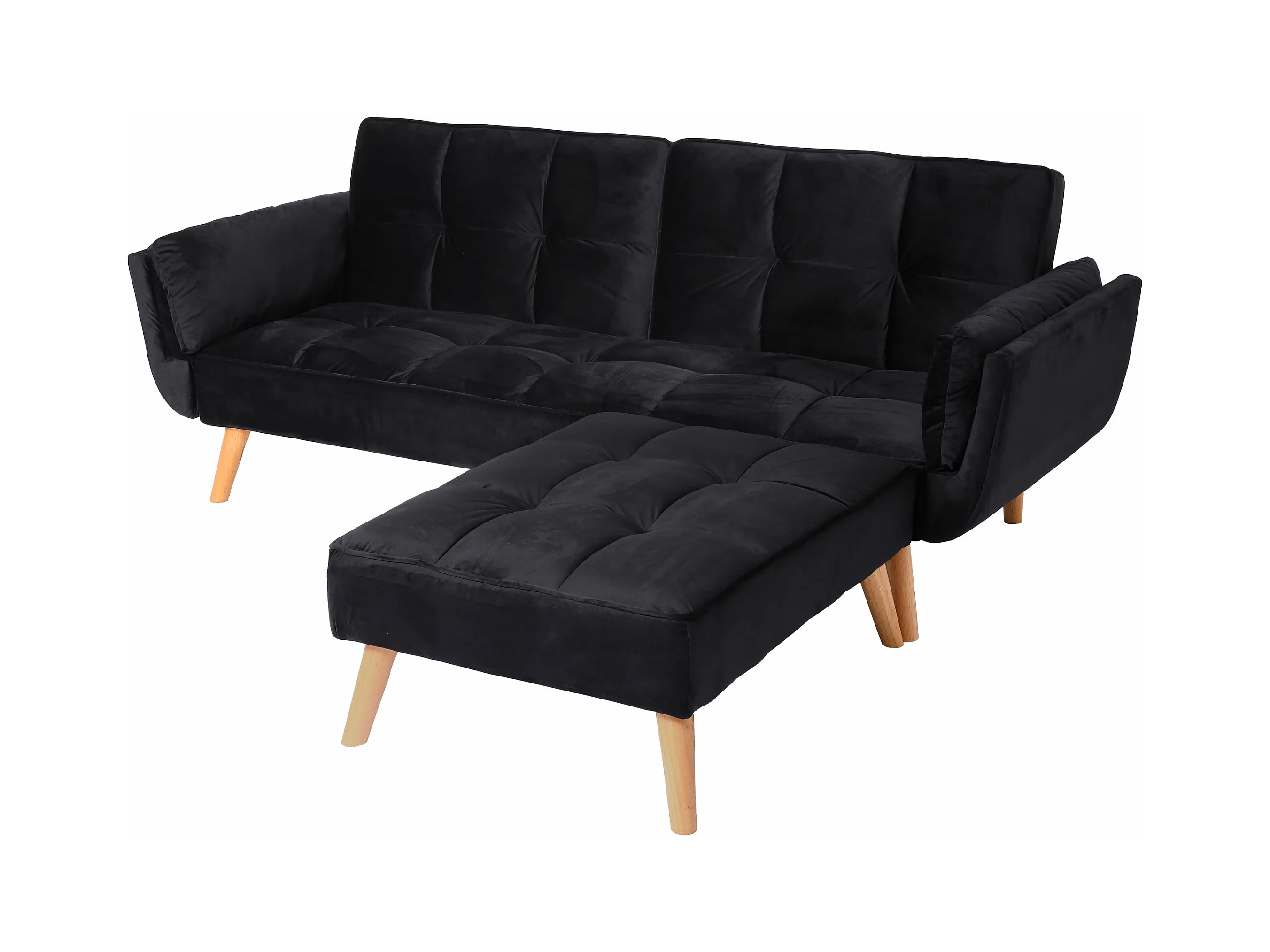 Divano moderno in velluto nero con schienale e braccioli regolabili - per soggiorno, camera da letto o home theater
