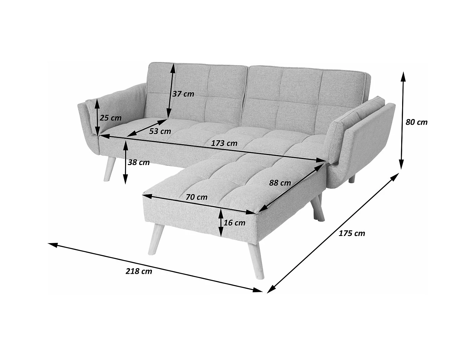 Divano letto in tessuto nero - Collezione LYLIA, dimensioni 196x78x84 cm