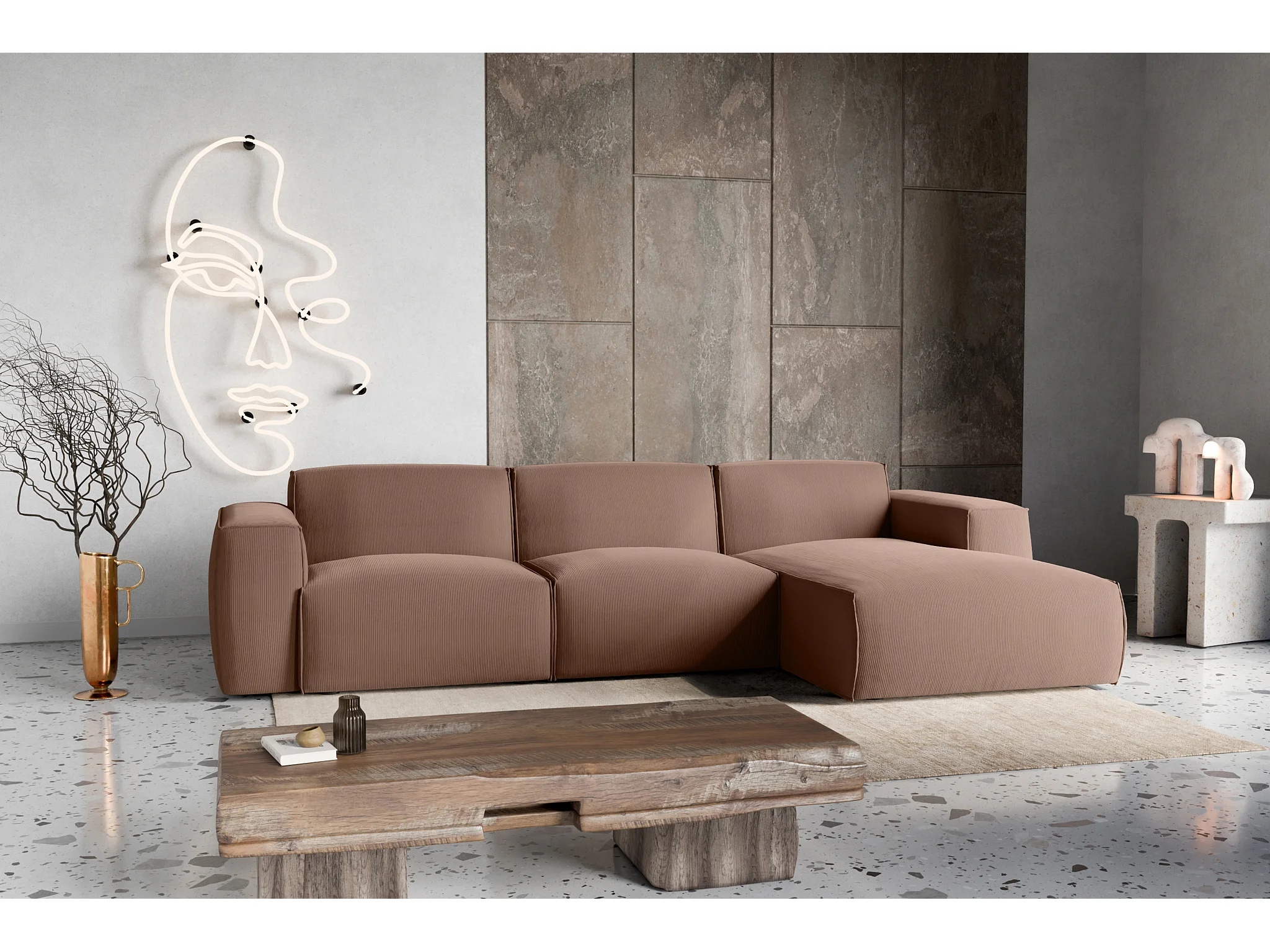 Divano letto angolare destro con vano contenitore Como in marrone cioccolato del produttore - VINOTTI