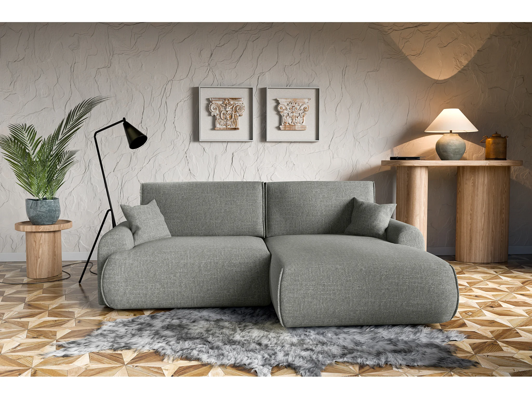 Divano letto angolare destro con vano contenitore Noboo in grigio direttamente dal produttore, consegna e installazione gratuite