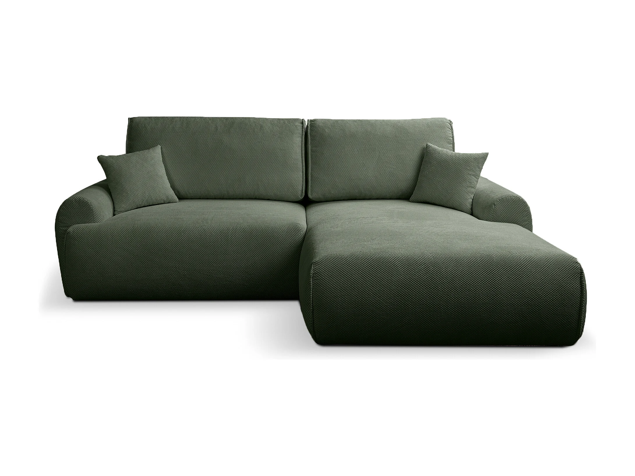 Divano letto angolare destro con vano contenitore Noboo in verde bottiglia direttamente dal produttore, consegna e installazione gratuite