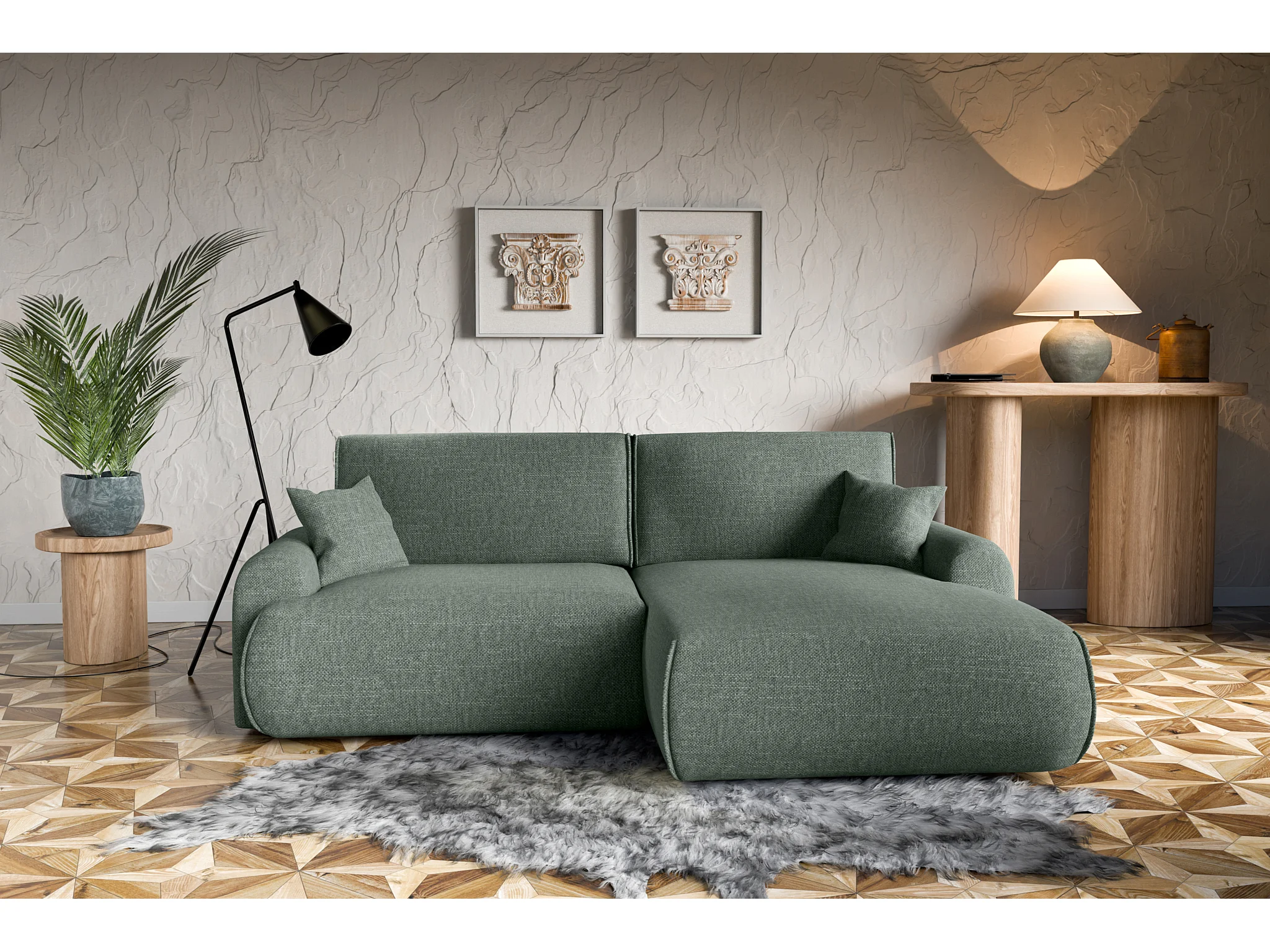 Divano letto angolare destro con vano contenitore Noboo in verde direttamente dal produttore, consegna e installazione gratuite