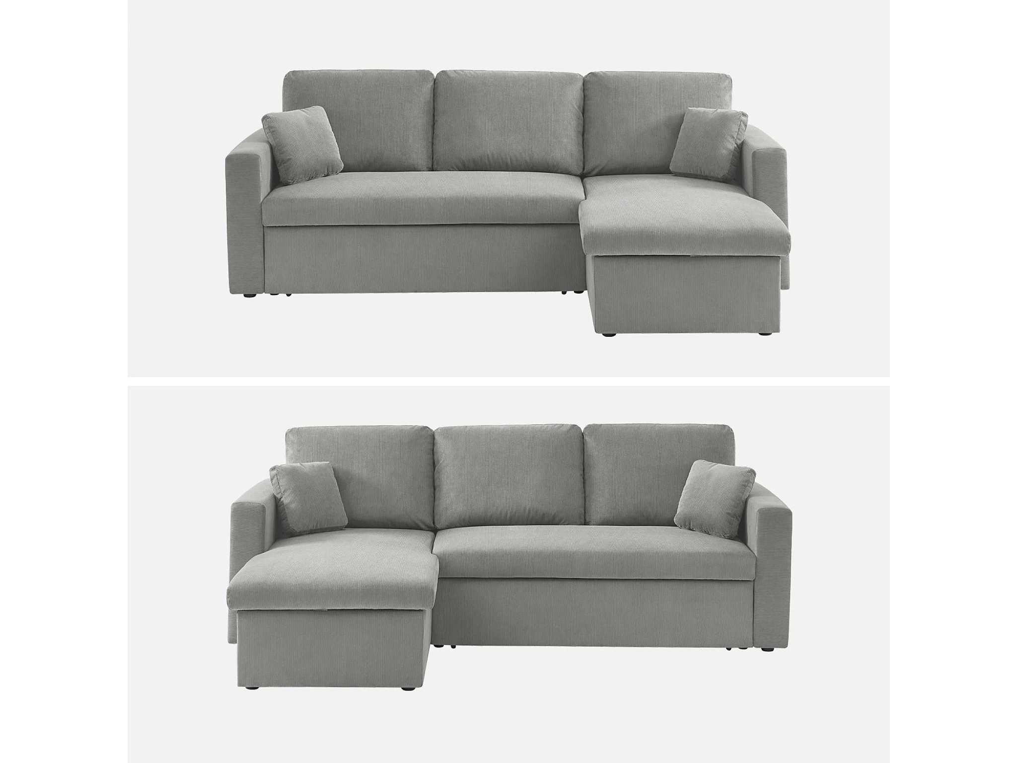 Divano letto angolare reversibile in velluto a coste, 3 posti, grigio