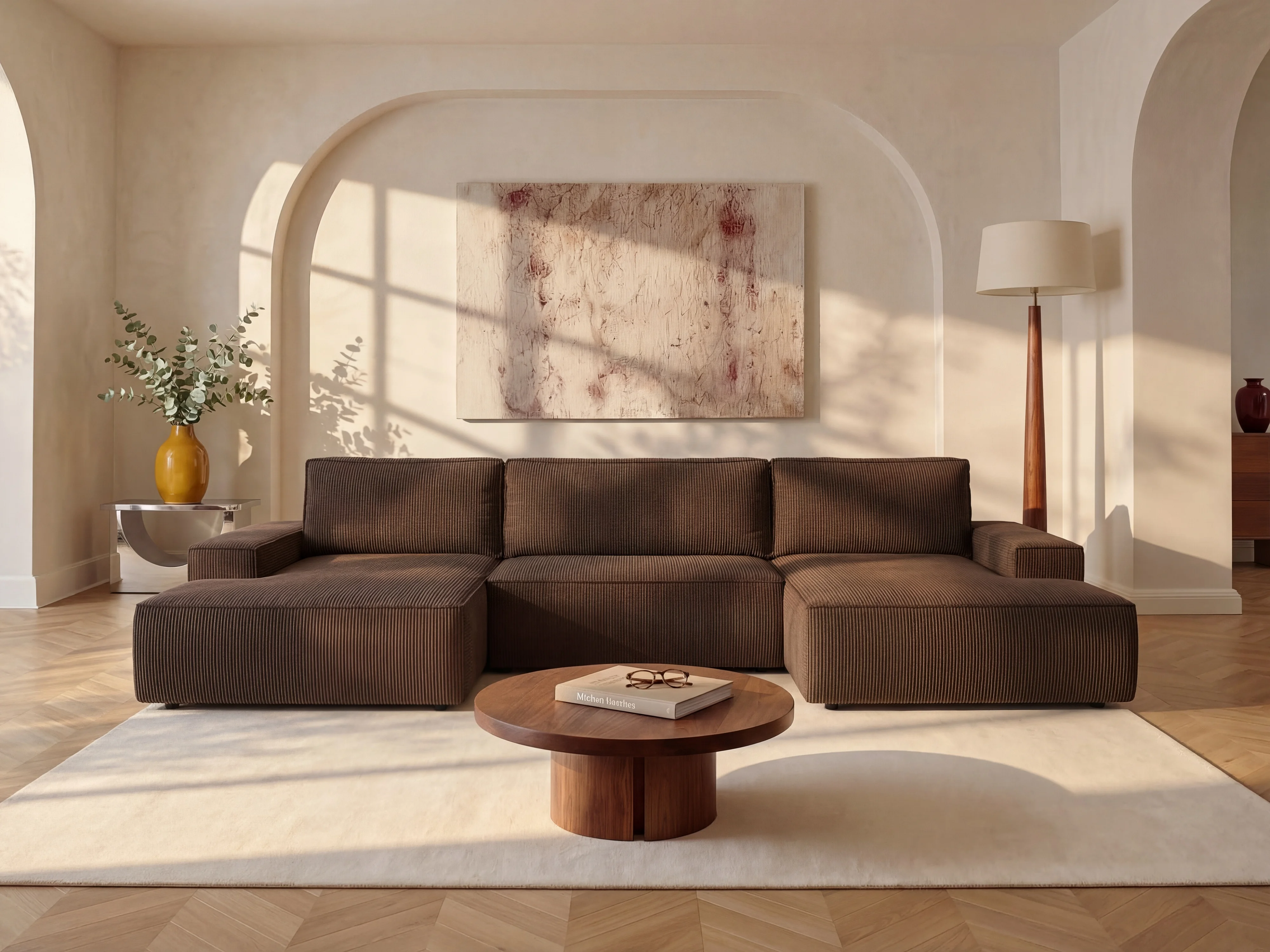 Divano letto angolare panoramico in Velluto a coste Marrone - AMELIA