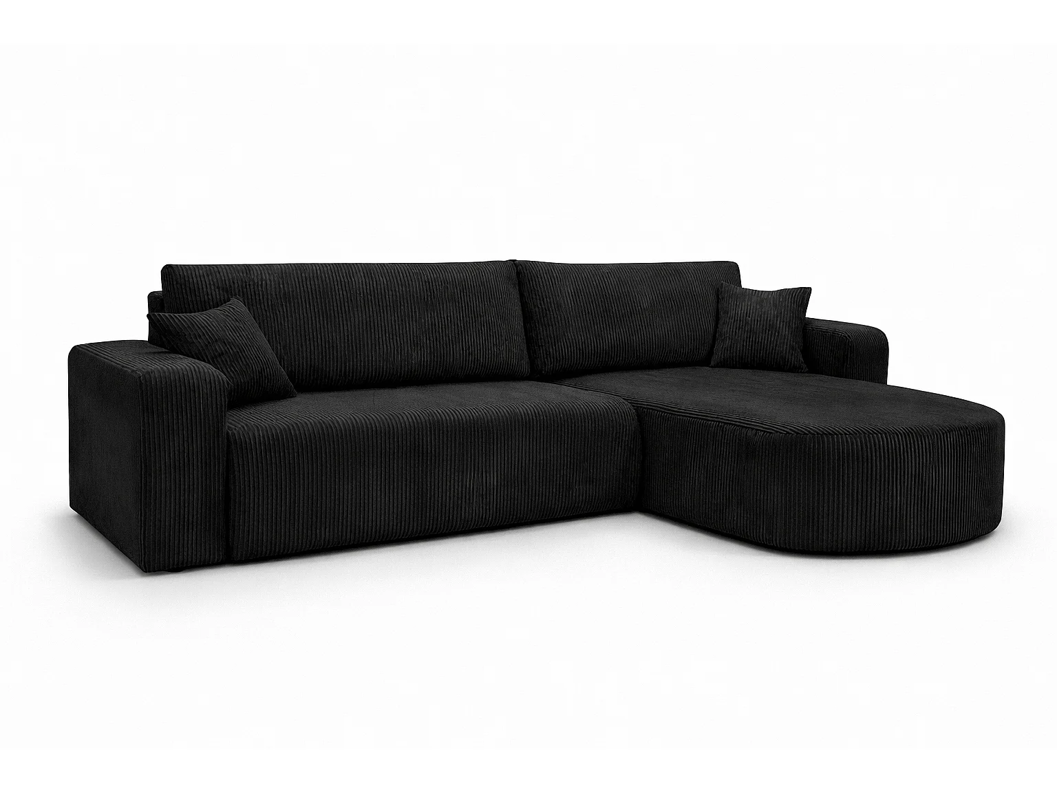 Divano letto angolare reversibile con vano contenitore universale in velluto a coste nero Kimo XL