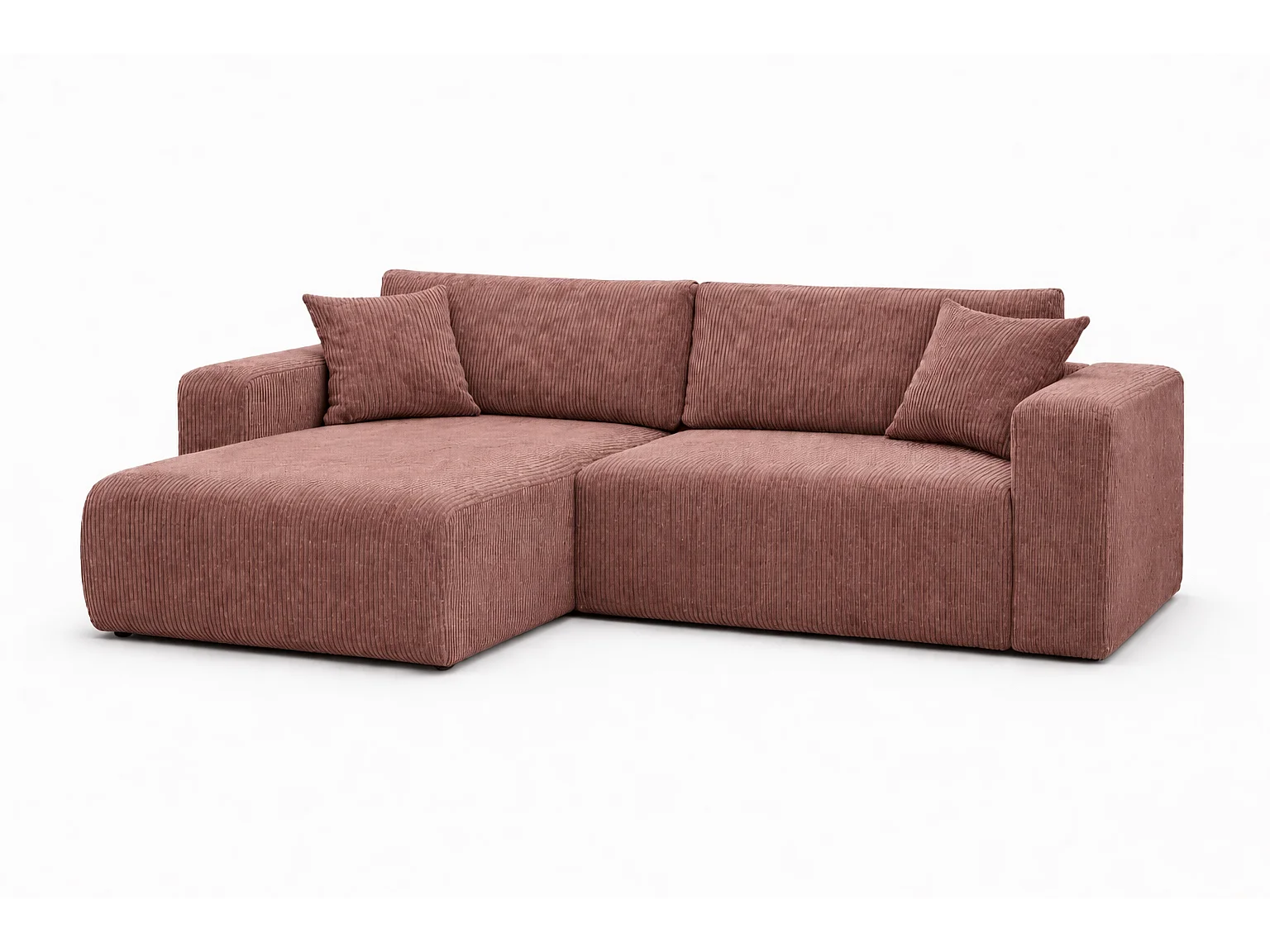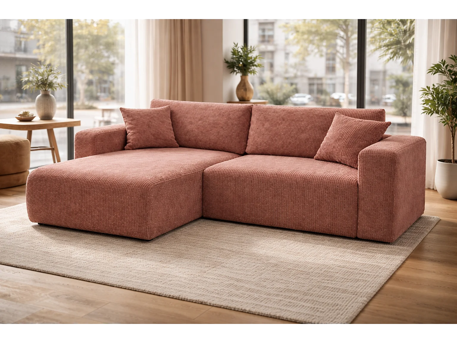 Divano letto angolare reversibile con vano contenitore universale in velluto a coste rame Flora L