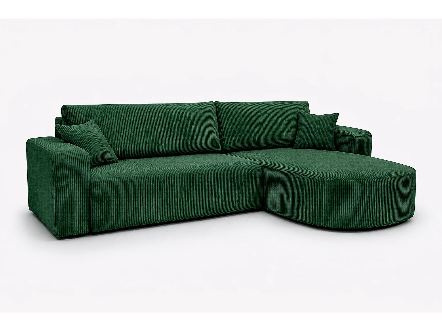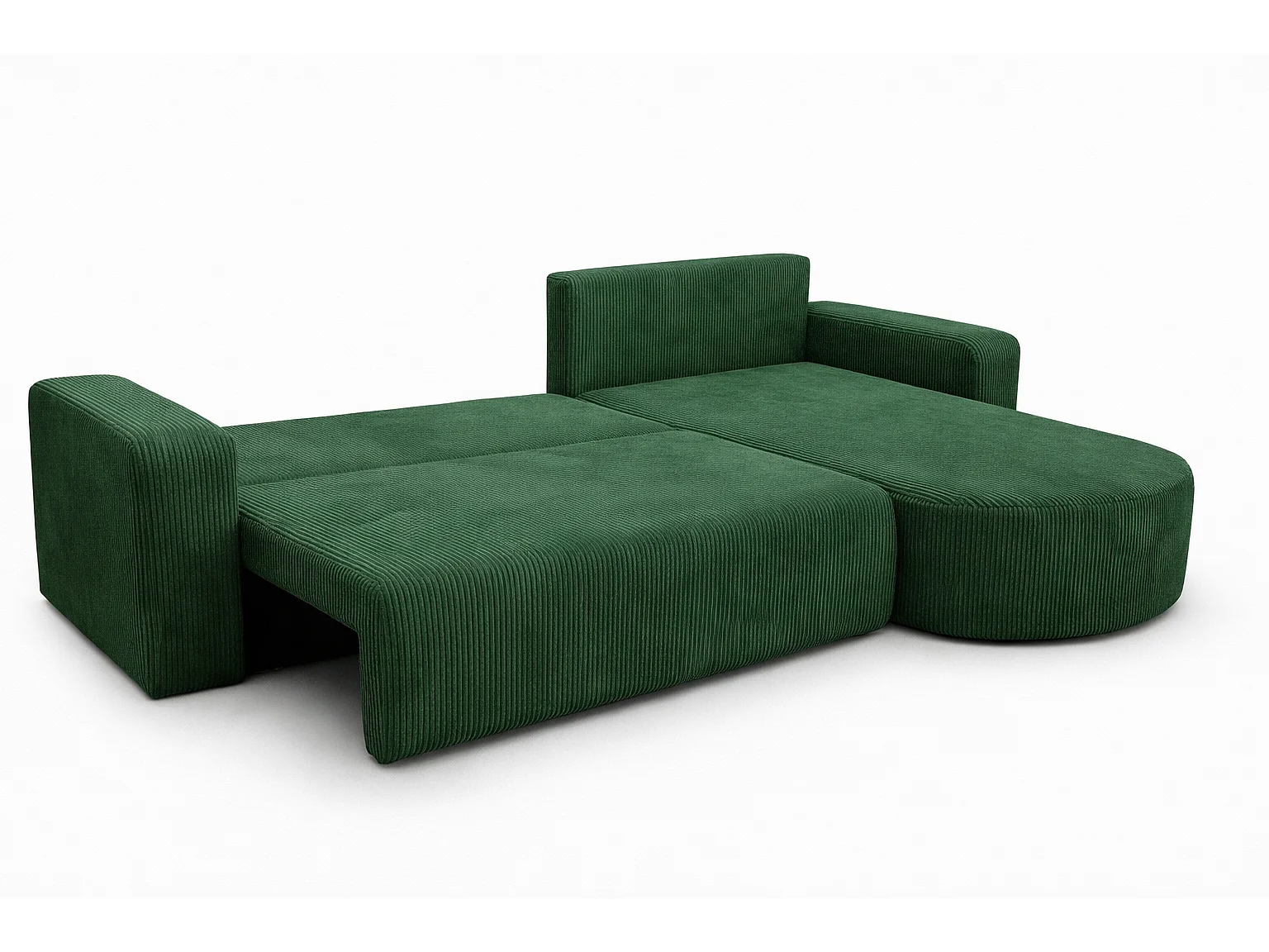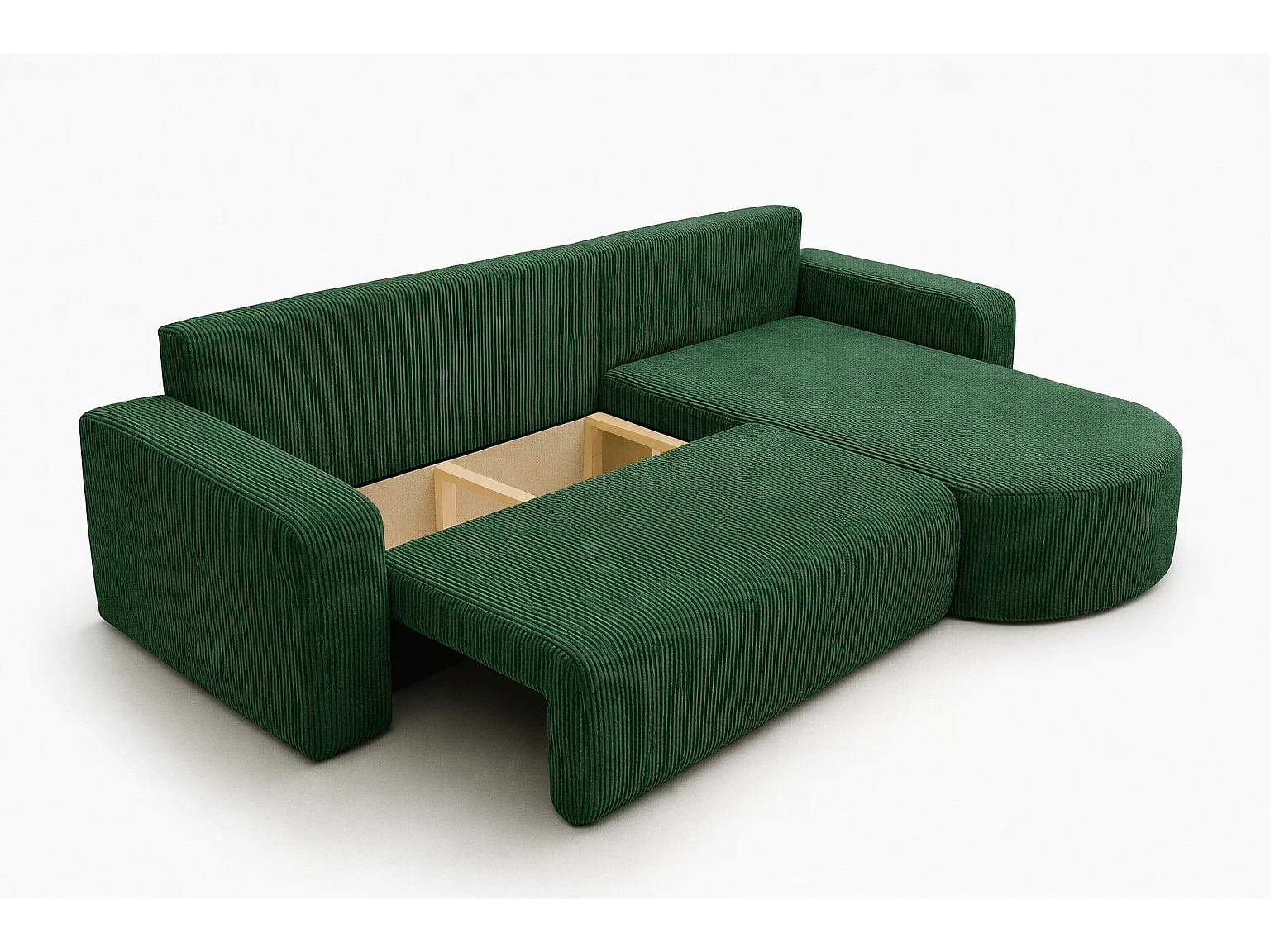 Divano letto angolare reversibile con vano contenitore universale in velluto a coste verde bottiglia Kimo XL