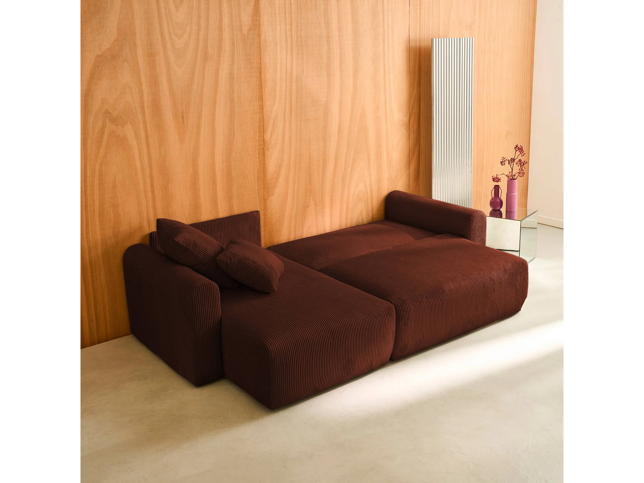 Divano letto angolare reversibile in velluto a coste, 3 posti