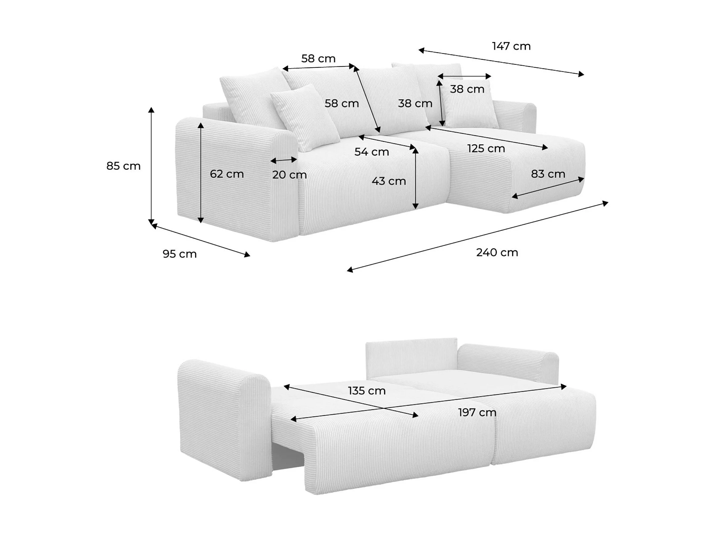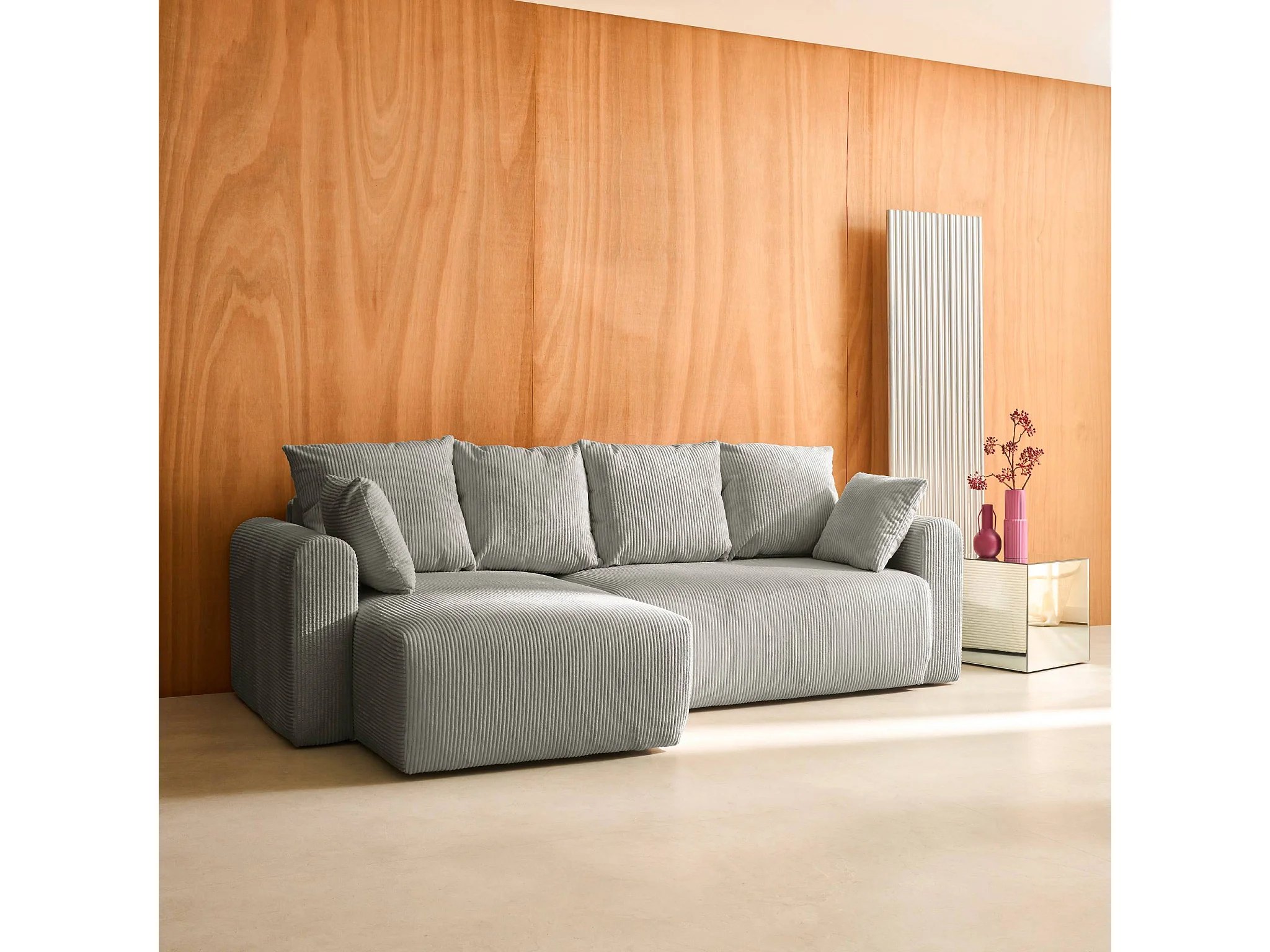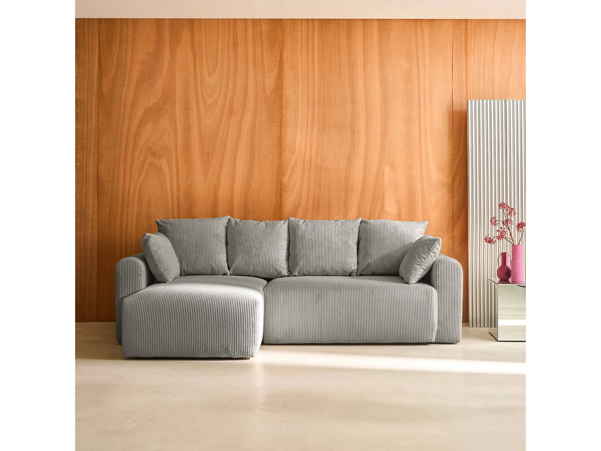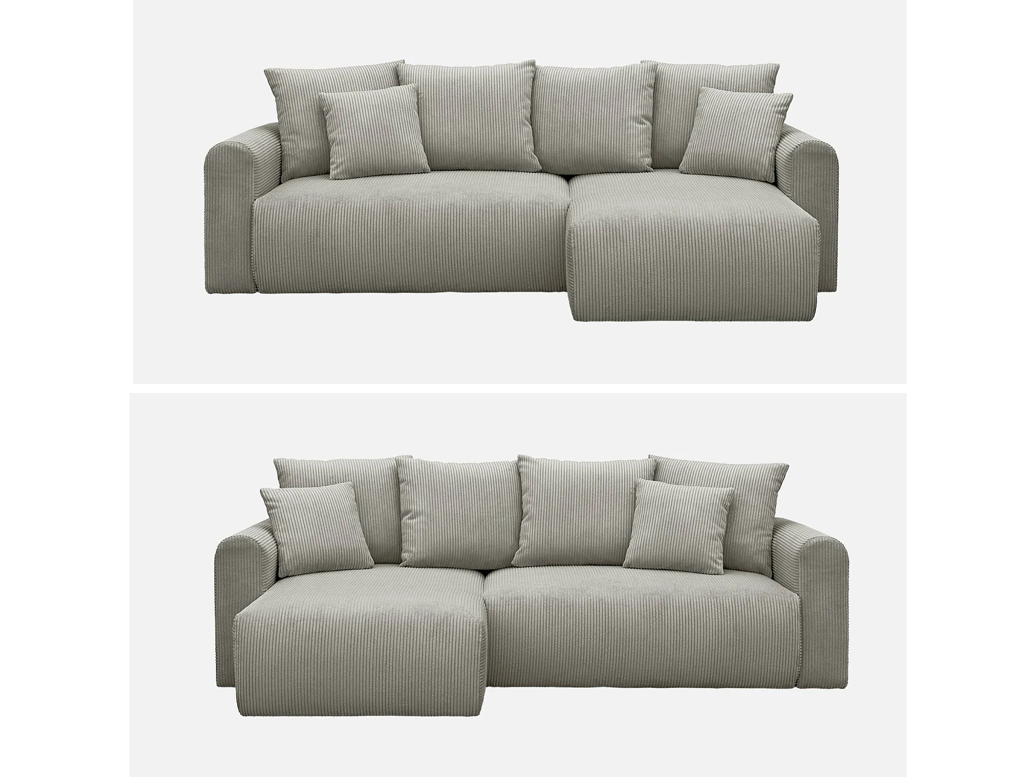 Divano letto angolare reversibile in velluto a coste, 3 posti, grigio