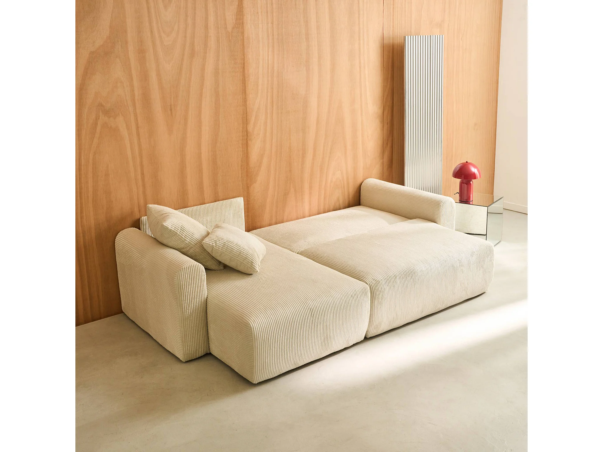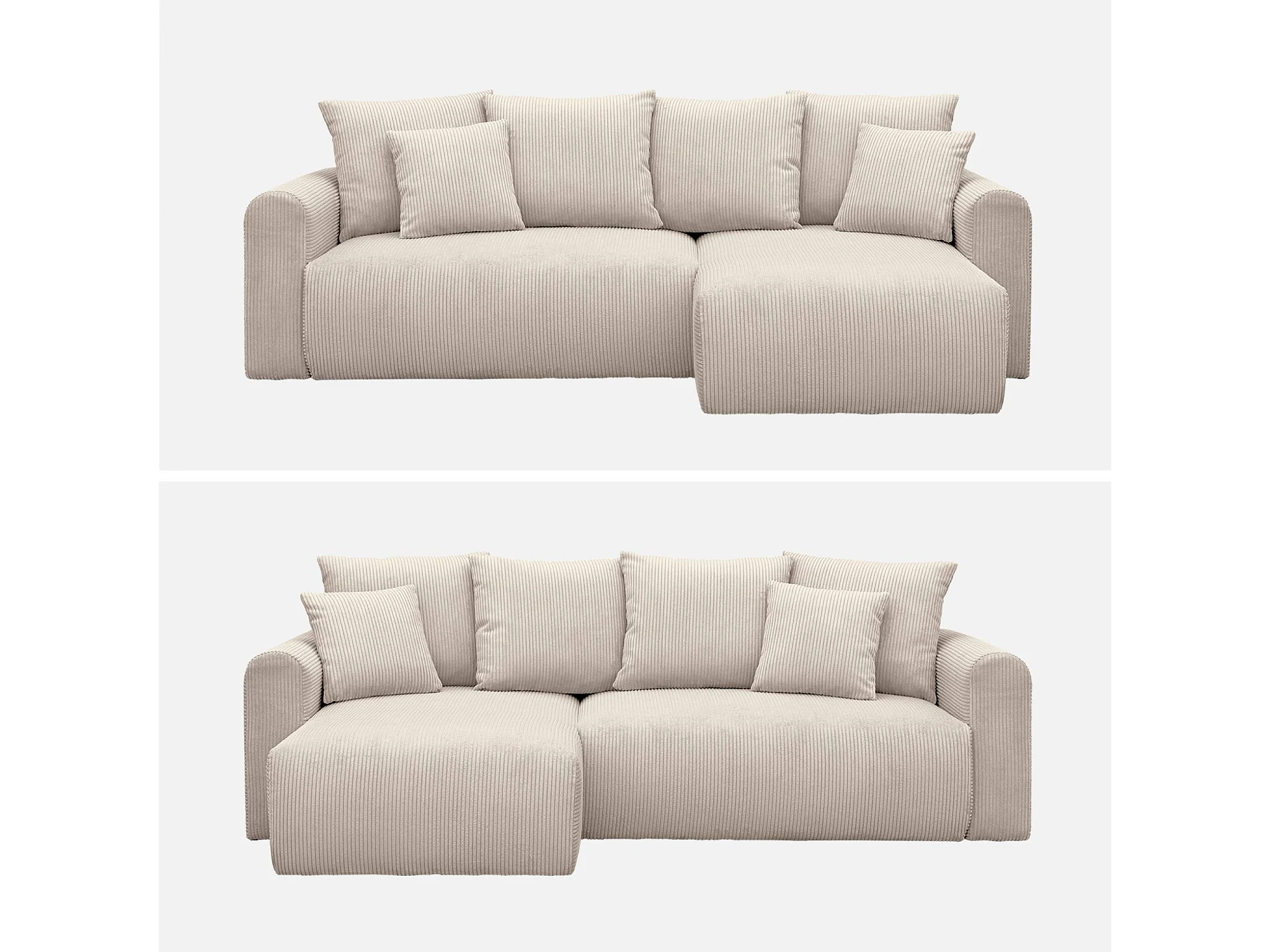 Divano letto angolare reversibile in velluto a coste, 3 posti, grigio