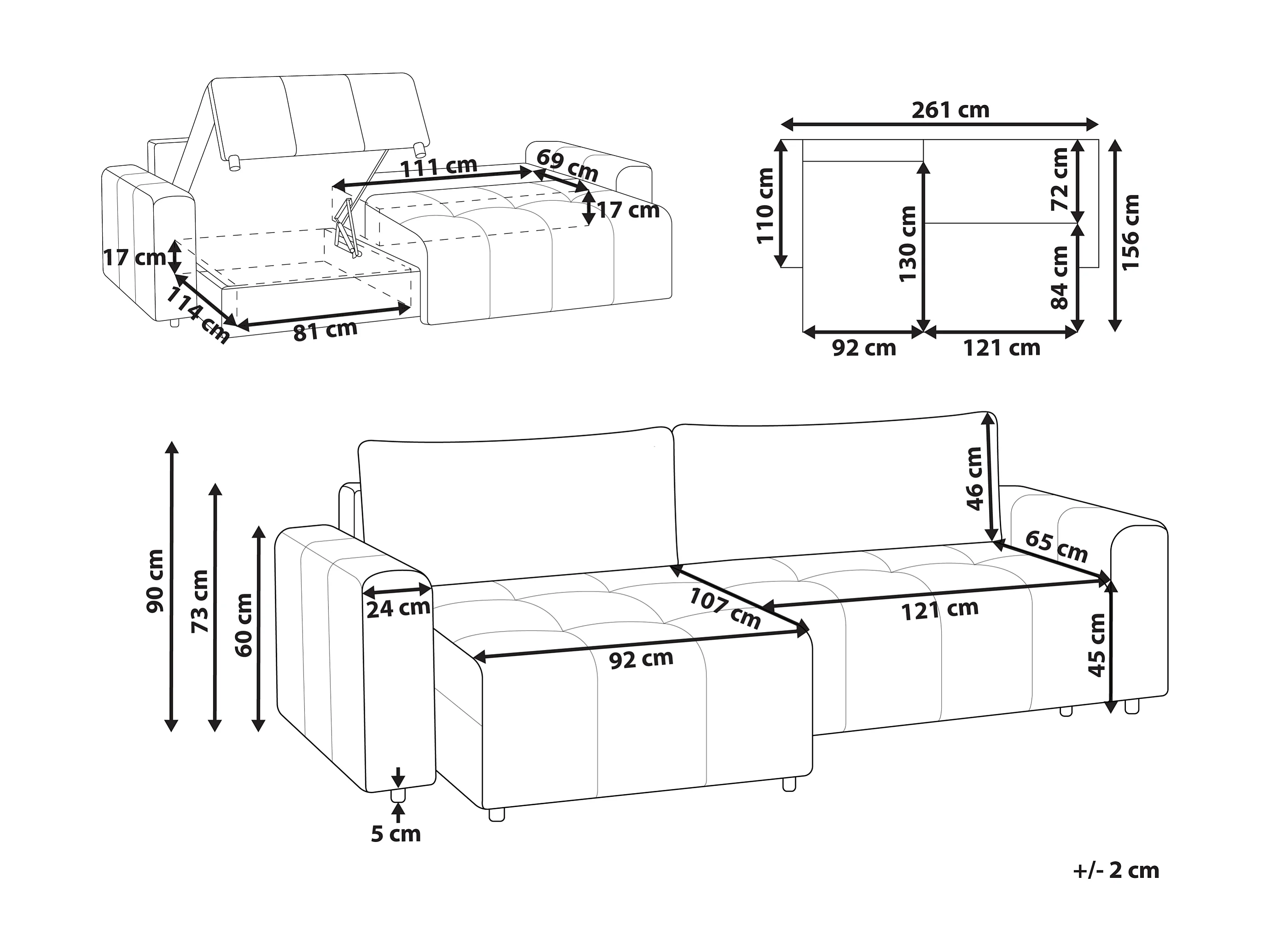 Divano letto angolare INNVIK Tessuto Marrone con contenitore 3 posti Lato destro