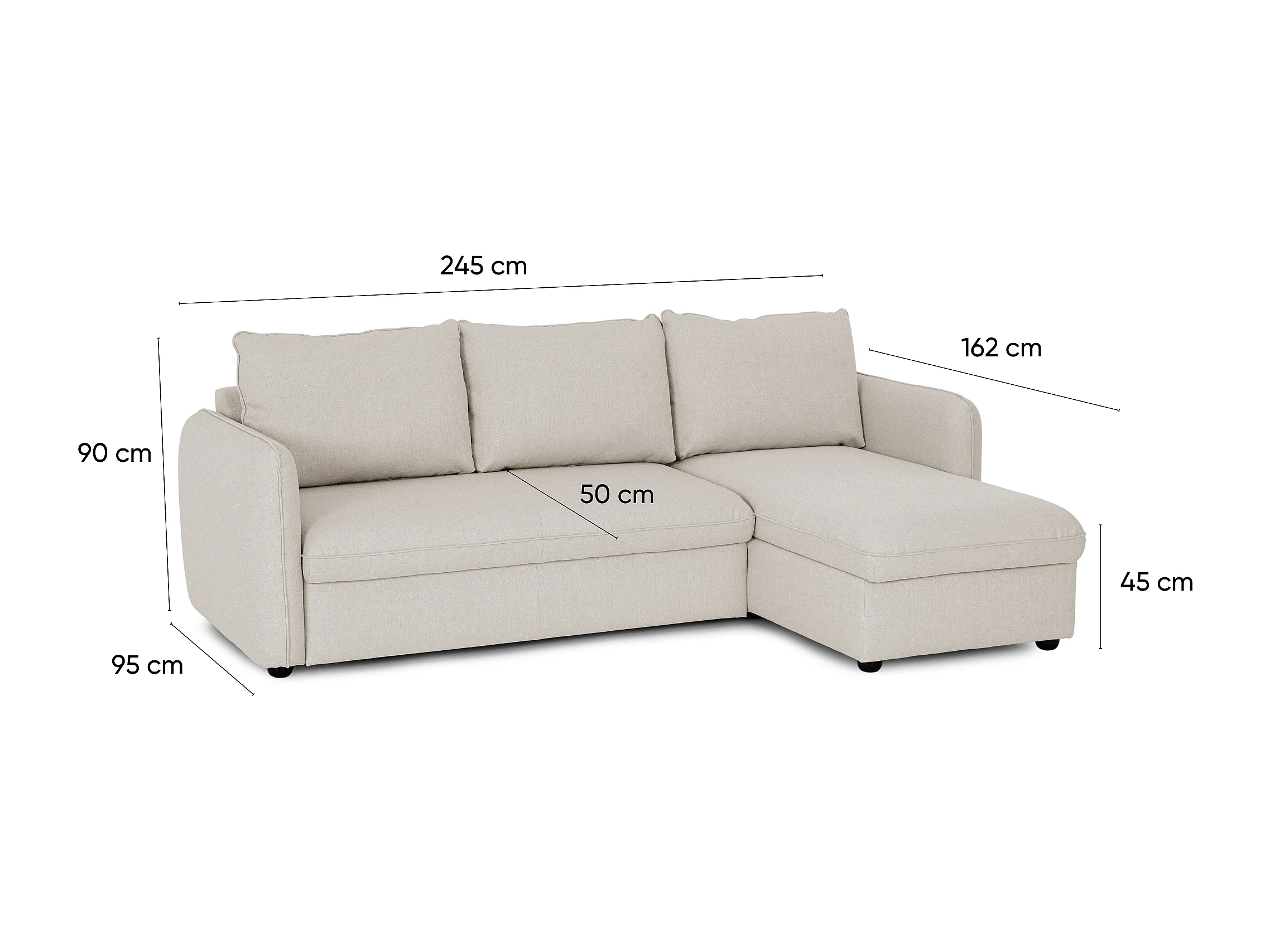 Divano 3 posti Beige - chaise reversibile lato destro/sinistroche con letto ad apertura facile (245 x 162 x 90 cm) - VOGUE